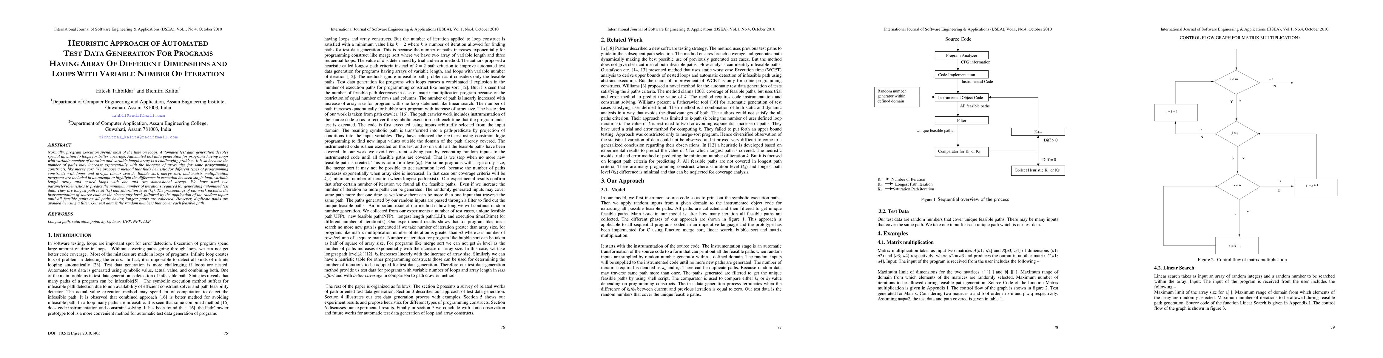 This paper proposes a heuristic approach for automated test data generation for programs with loops and variable-length arrays, focusing on constructs like merge sort. It introduces two heuristics, longest path level (kL) and saturation level (kS), to determine the minimum iterations required for generating test data, aiming to cover all feasible paths without duplicates.