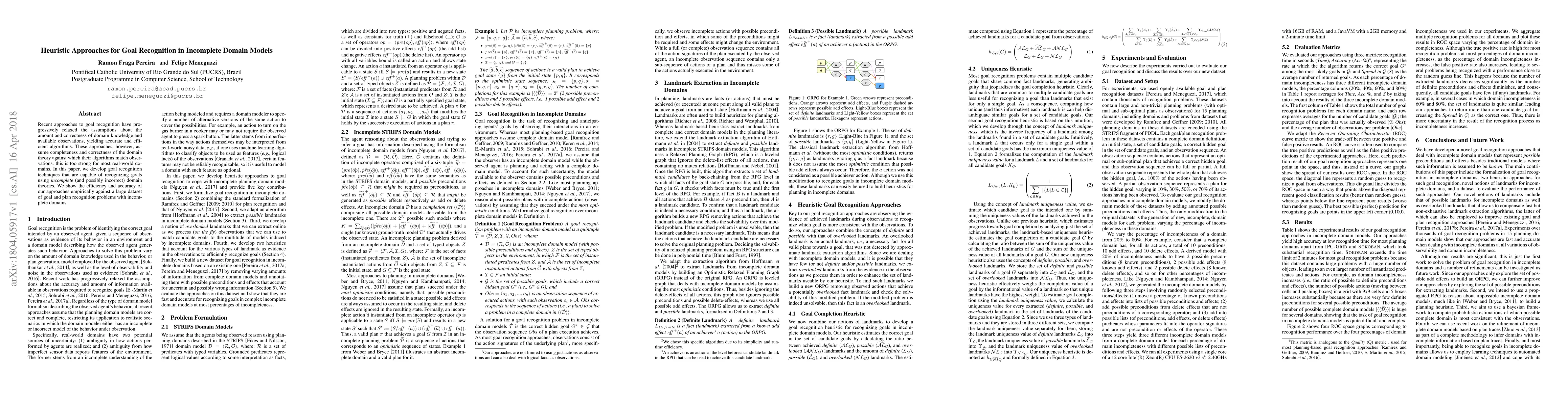 This paper proposes heuristic goal recognition techniques that operate under incomplete and potentially incorrect domain theories, demonstrating their efficiency and accuracy through empirical testing on a large dataset of goal and plan recognition problems.