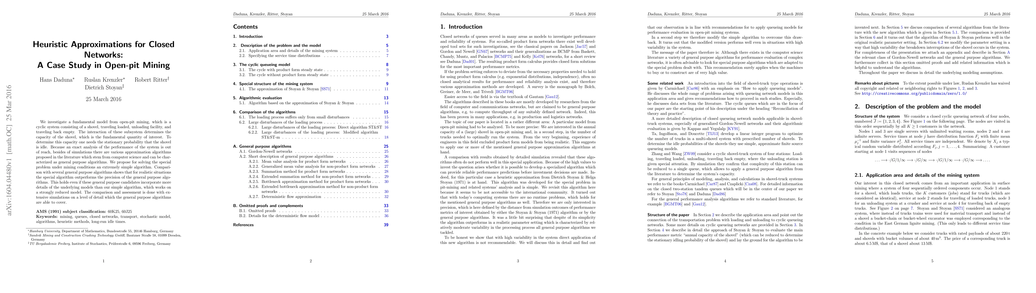 We investigate a fundamental model from open-pit mining, which is a cyclic system consisting of a shovel, traveling loaded, unloading facility, and traveling back empty. The interaction of these subsystem determines the capacity of the shovel, which is the fundamental quantity of interest. To determine this capacity one needs the stationary probability that the shovel is idle. Because an exact analysis of the performance of the system is out of reach, besides of simulations there are various approximation algorithms proposed in the literature which stem from computer science and can be characterized as general purpose algorithms. We propose for solving the special problem under mining conditions an extremely simple algorithm. Comparison with several general purpose algorithms shows that for realistic situations the special algorithm outperforms the precision of the general purpose algorithms. This holds even if these general purpose candidates incorporate more details of the underlying models than our simple algorithm, which works on a strongly reduced model. The comparison and assessment is done with extensive simulations on a level of detail which the general purpose algorithms are able to cover.