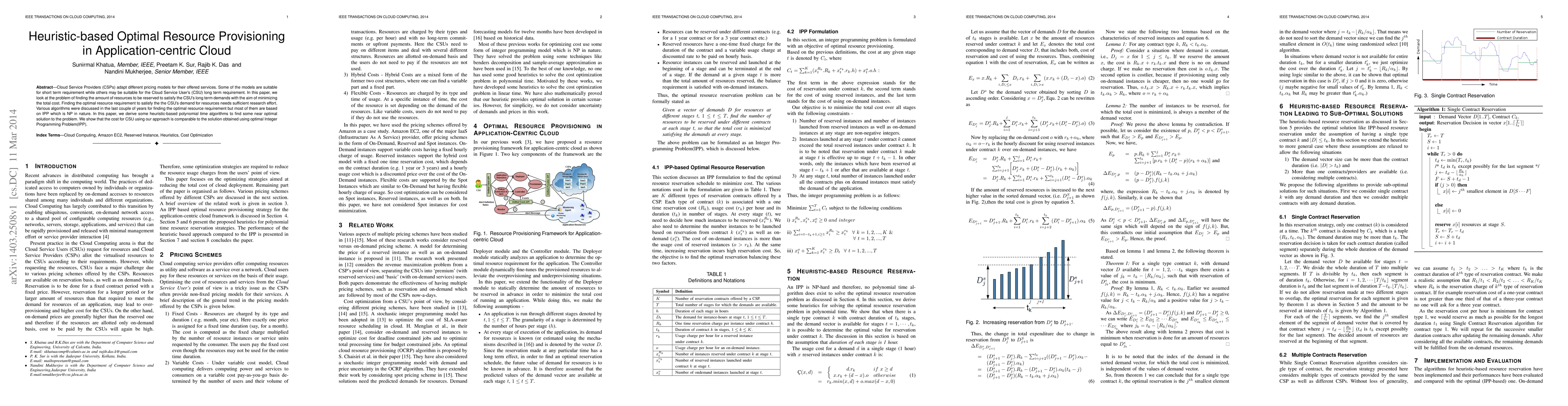 This paper presents heuristic-based algorithms to efficiently determine optimal resource provisioning in cloud computing for long-term user demands, aiming to minimize costs. The proposed methods are polynomial time and provide near-optimal solutions comparable to those of the complex Integer Programming Problem (IPP) approach.