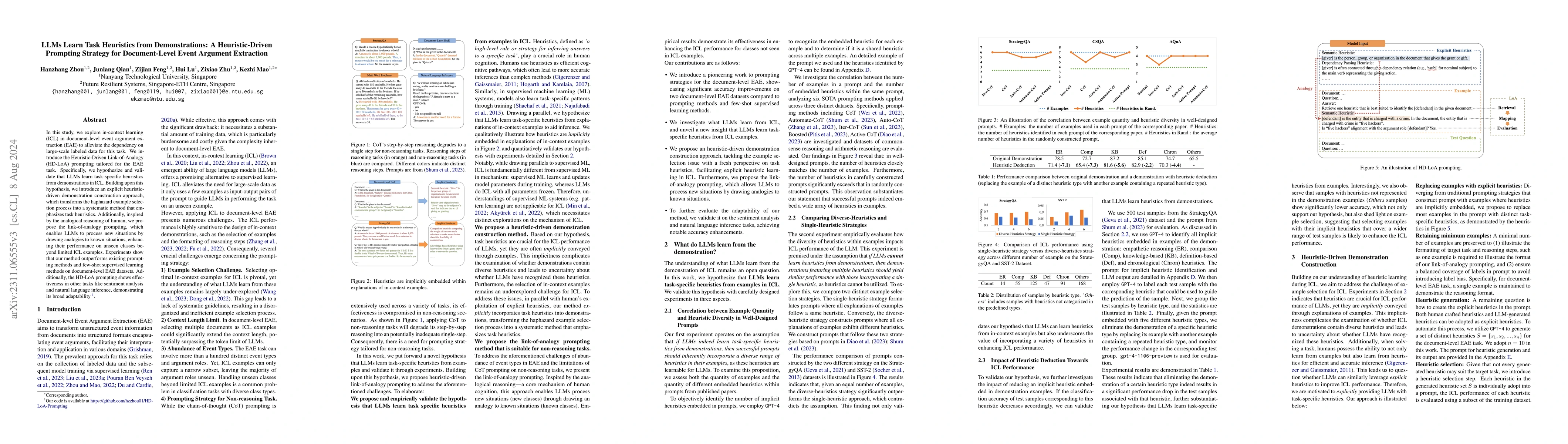 This study introduces Heuristic-Driven Link-of-Analogy (HD-LoA) prompting to enhance large language models for document-level event argument extraction, leveraging in-context learning to reduce reliance on large labeled datasets. The method outperforms existing prompting and few-shot learning techniques, showing broad adaptability across various NLP tasks.