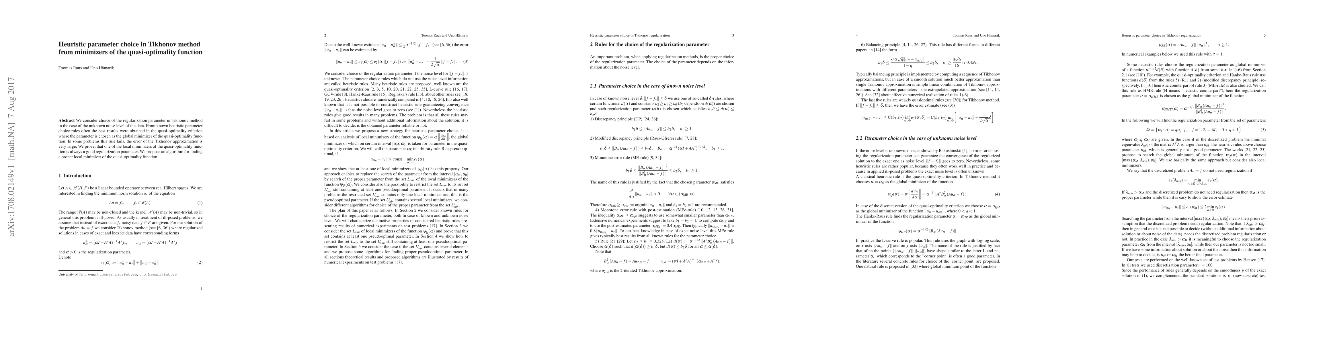 Researchers found that a local minimizer of the quasi-optimality function is always a good regularization parameter for the Tikhonov method, improving results over traditional heuristic methods.