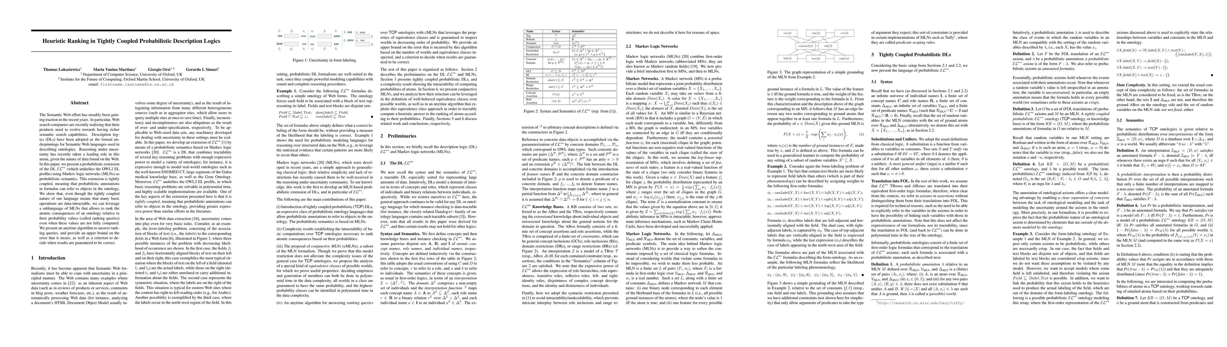 The Semantic Web effort has steadily been gaining traction in the recent years. In particular,Web search companies are recently realizing that their products need to evolve towards having richer semantic search capabilities. Description logics (DLs) have been adopted as the formal underpinnings for Semantic Web languages used in describing ontologies. Reasoning under uncertainty has recently taken a leading role in this arena, given the nature of data found on theWeb. In this paper, we present a probabilistic extension of the DL EL++ (which underlies the OWL2 EL profile) using Markov logic networks (MLNs) as probabilistic semantics. This extension is tightly coupled, meaning that probabilistic annotations in formulas can refer to objects in the ontology. We show that, even though the tightly coupled nature of our language means that many basic operations are data-intractable, we can leverage a sublanguage of MLNs that allows to rank the atomic consequences of an ontology relative to their probability values (called ranking queries) even when these values are not fully computed. We present an anytime algorithm to answer ranking queries, and provide an upper bound on the error that it incurs, as well as a criterion to decide when results are guaranteed to be correct.