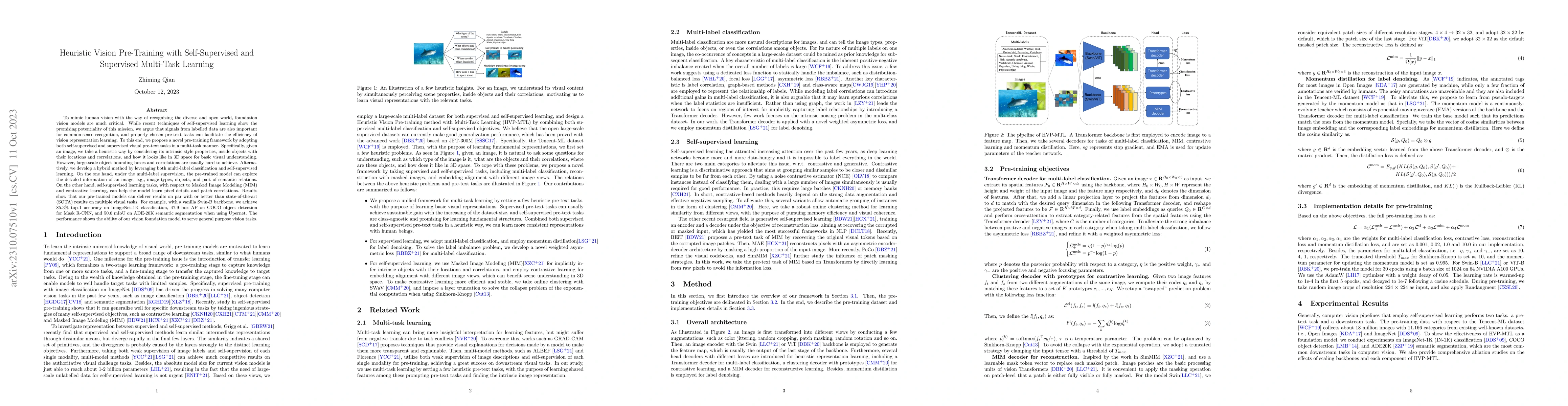This paper proposes a novel pre-training framework that combines self-supervised and supervised multi-task learning to develop foundation vision models. The hybrid approach leverages multi-label classification and self-supervised learning tasks to achieve state-of-the-art results on various visual tasks, demonstrating the model's effectiveness for general-purpose vision applications.