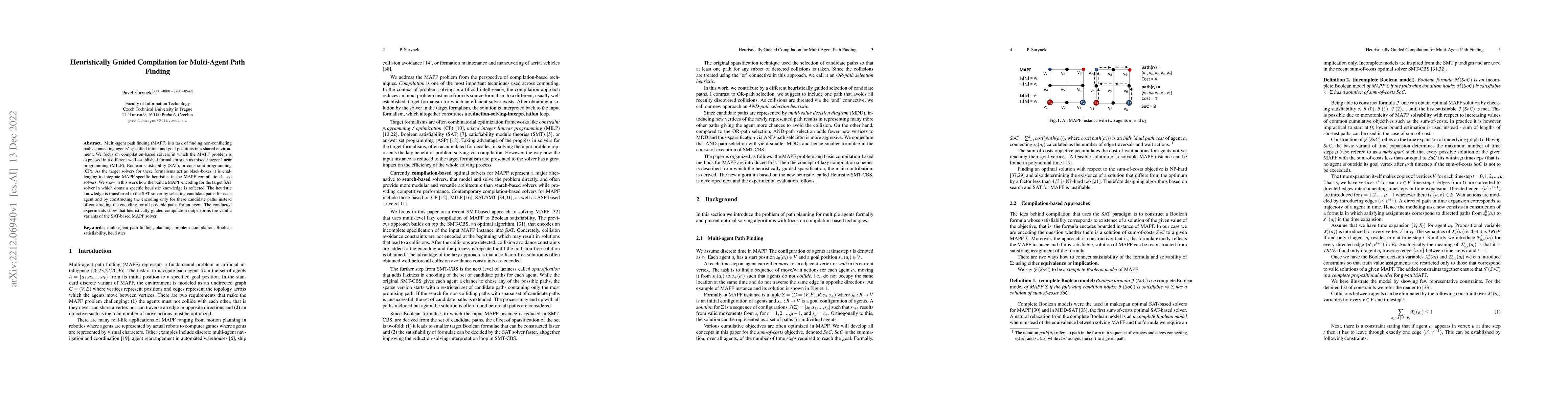 This research develops a compilation-based solver for multi-agent path finding that encodes the problem into a SAT solver, leveraging domain-specific heuristics by focusing only on candidate paths rather than all possible paths. Experimental results demonstrate that this heuristically guided compilation approach outperforms traditional SAT-based MAPF solvers.