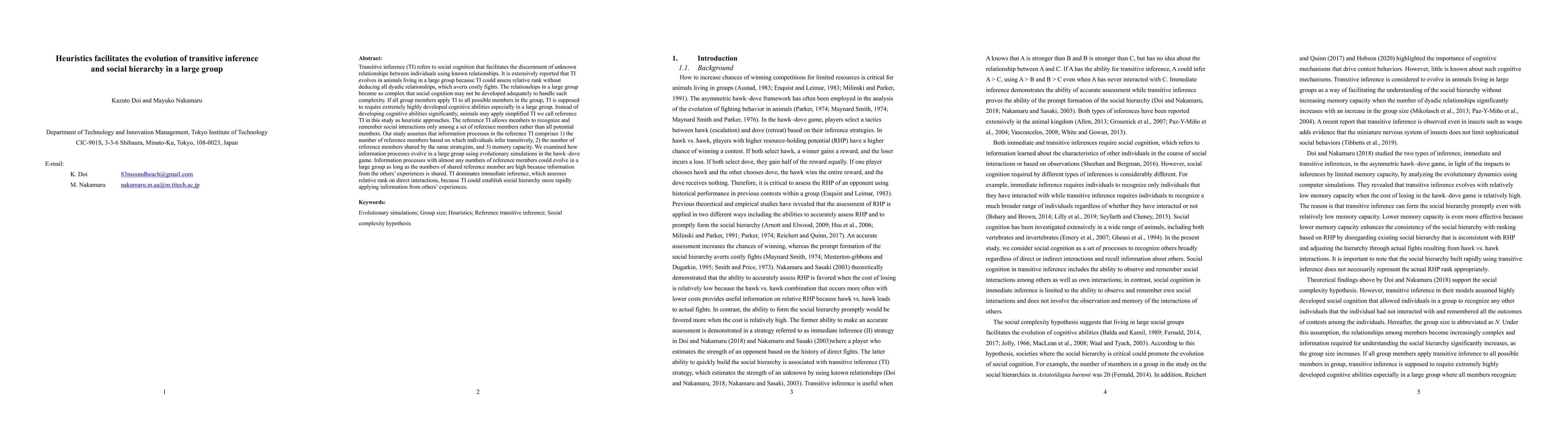 This study explores how heuristics facilitate the evolution of transitive inference (TI) in large groups, allowing animals to deduce social hierarchies without exhaustive cognitive effort. Evolutionary simulations show that TI can evolve effectively through shared reference members, enabling rapid social hierarchy establishment.