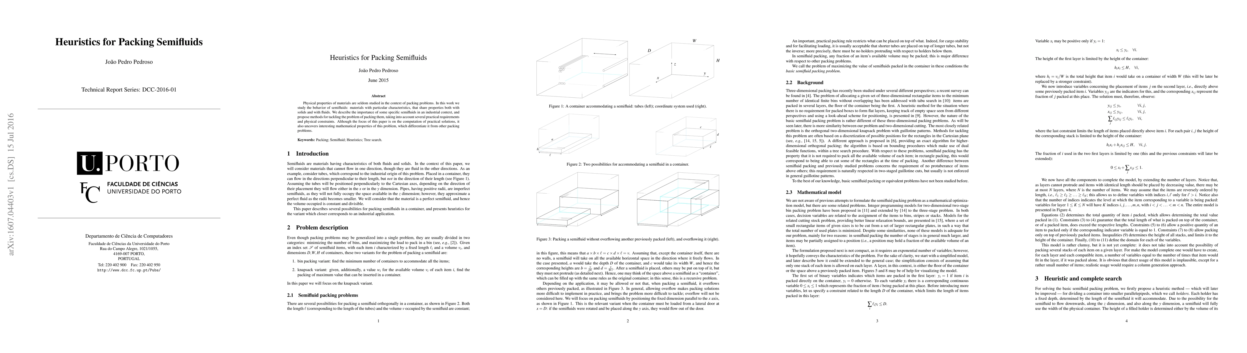 This paper explores the packing behavior of semifluids—materials with properties between solids and fluids—and proposes methods for efficient packing, emphasizing practical industrial applications and unique mathematical properties of these packing problems. The study also highlights the importance of these semifluids in industrial contexts.