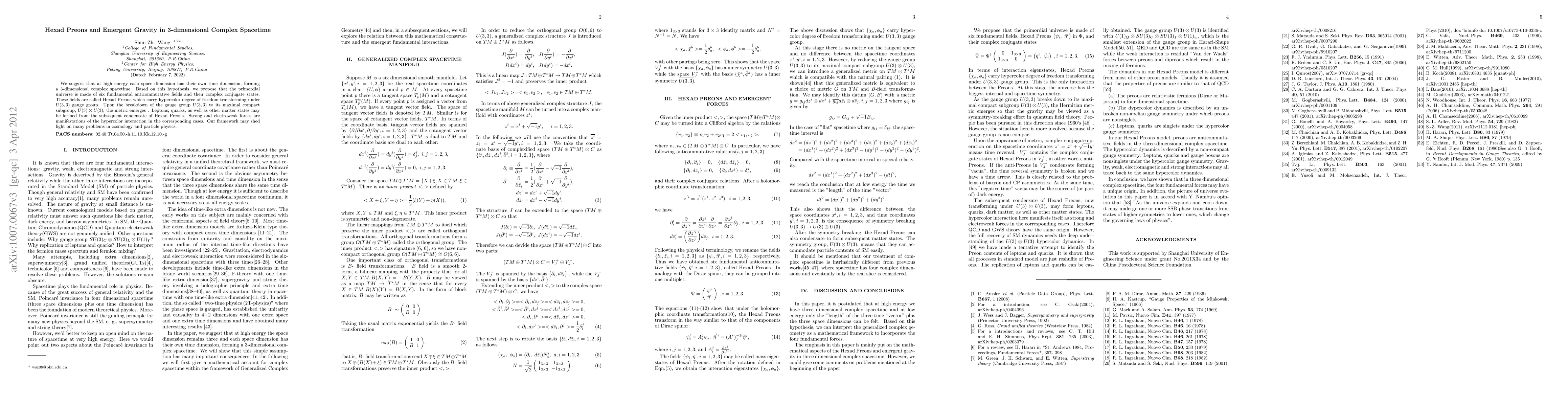 This paper proposes a 3-dimensional complex spacetime where each spatial dimension has its own time dimension, suggesting that the primordial universe consists of six fundamental anticommutative fields called Hexad Preons. These fields give rise to emergent gravity and form the basis for leptons, quarks, and other matter states through the hypercolor interaction.