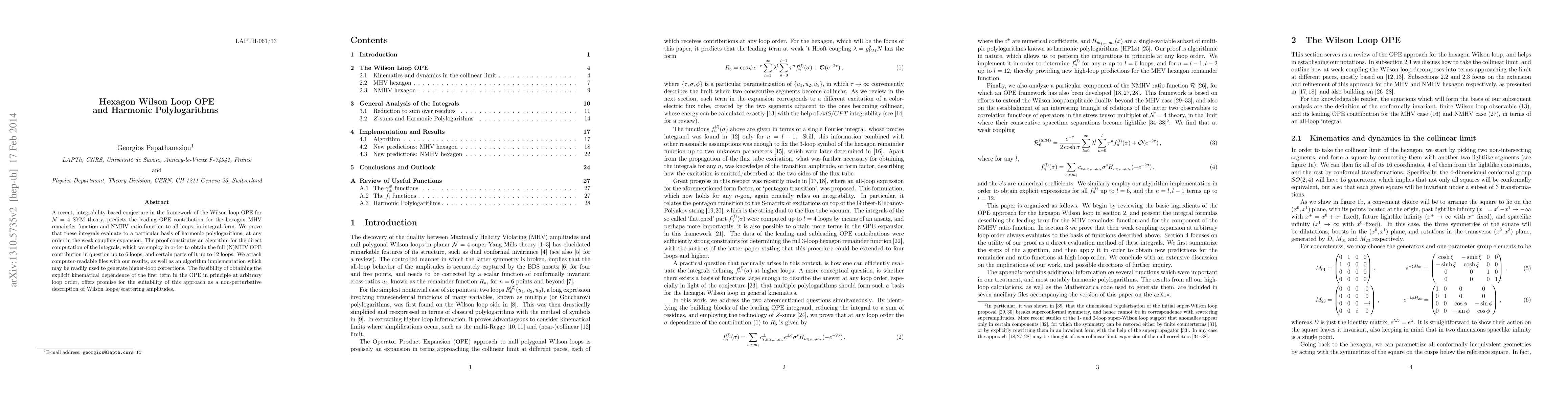This paper proves an integrability-based conjecture predicting the leading OPE contributions for hexagon MHV and NMHV functions in N=4 SYM theory, showing that these contributions evaluate to harmonic polylogarithms. The authors provide an algorithm for computing these integrals and apply it to obtain full (N)MHV OPE contributions up to 6 loops and parts up to 12 loops, suggesting potential for non-perturbative descriptions of Wilson loops and scattering amplitudes.