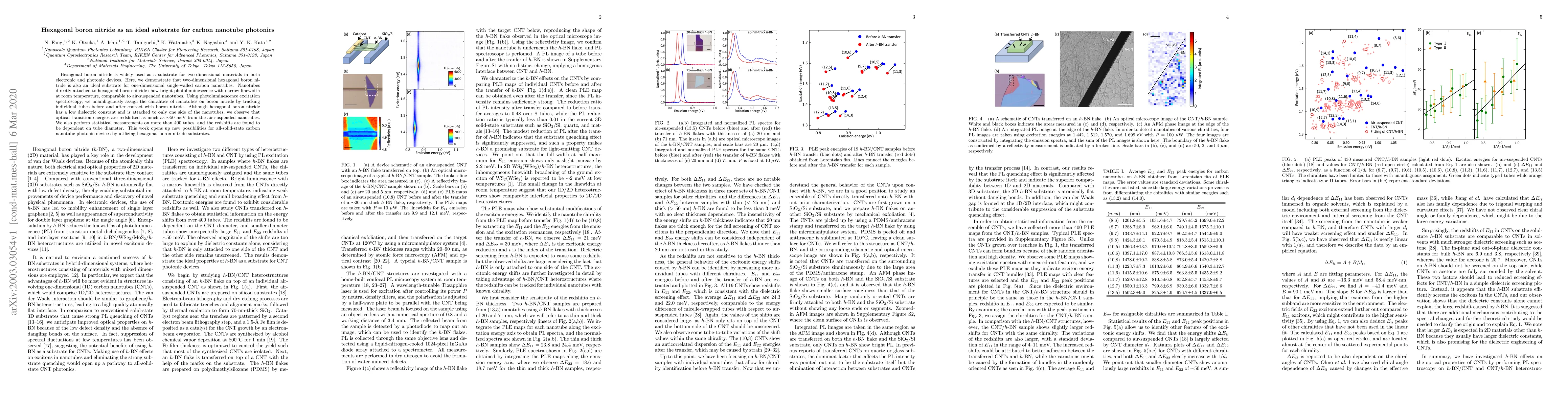 Hexagonal boron nitride (hBN) is demonstrated to be an ideal substrate for single-walled carbon nanotubes, showcasing bright photoluminescence and allowing precise chirality assignment via spectroscopy. Redshifts in optical transition energies, dependent on tube diameter, suggest enhanced photonic device potential.