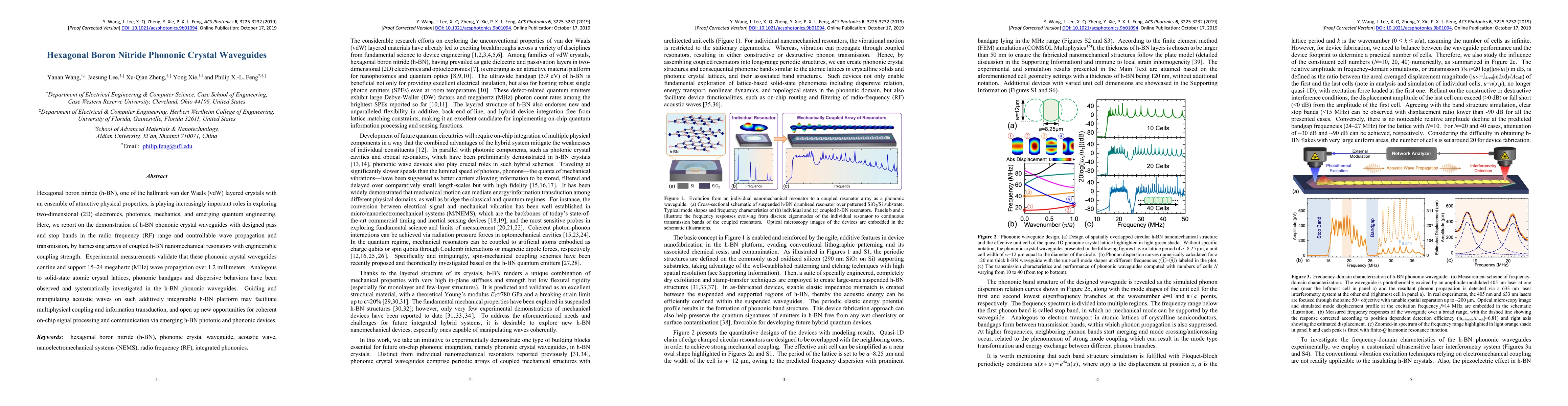 This paper demonstrates hexagonal boron nitride (h-BN) phononic crystal waveguides with engineered RF phononic bandgaps, showcasing controlled wave propagation and transmission in the MHz range. The study highlights the potential of h-BN for multiphysical coupling and on-chip signal processing in future phononic and photonic devices.