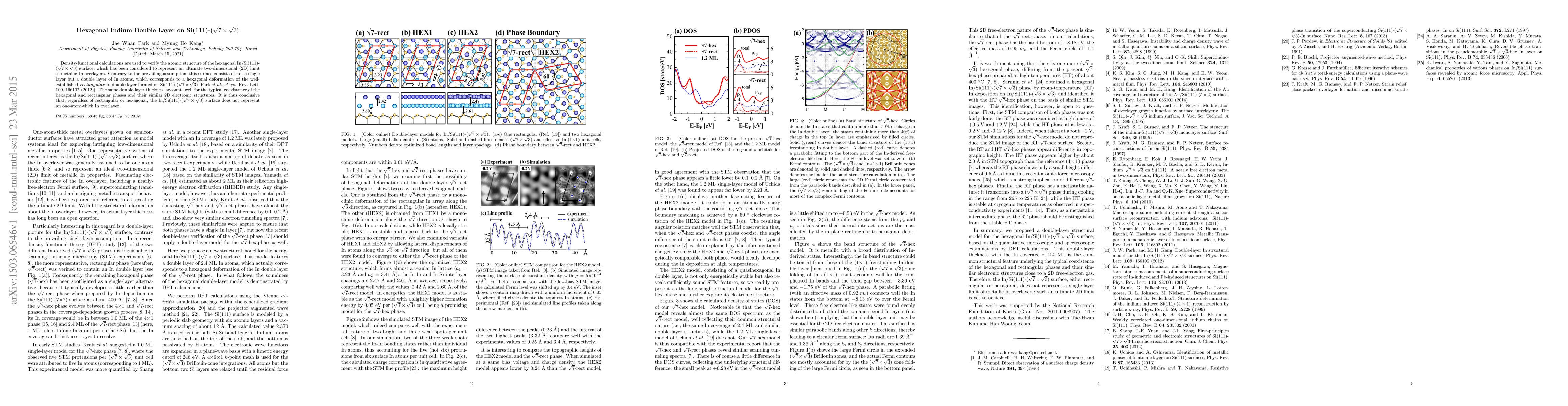 This study reveals that the In/Si(111)-($\sqrt{7}\times\sqrt{3}$) surface comprises a hexagonal double layer of In atoms, contrary to prior assumptions of a single-layer structure, and explains the coexistence of hexagonal and rectangular phases through their similar 2D electronic properties.