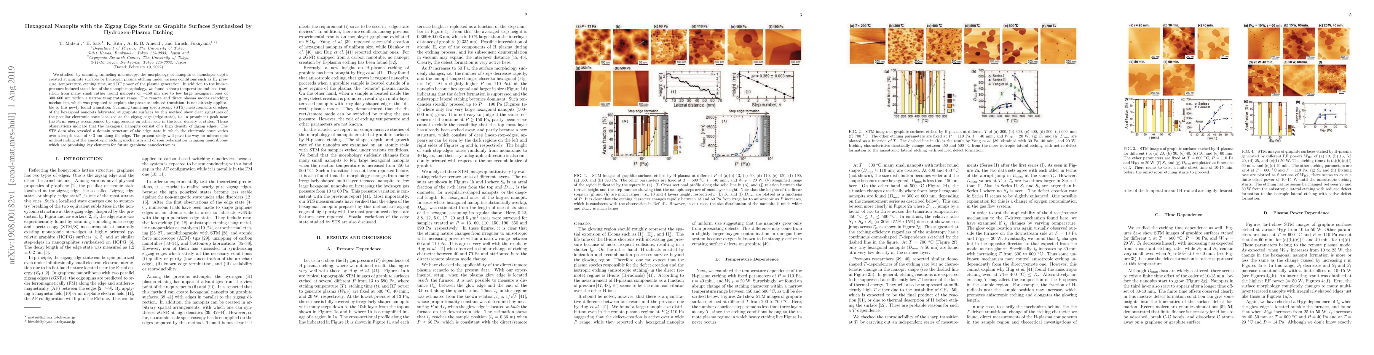 The paper presents a novel method for synthesizing hexagonal nanopits with zigzag edge states on graphite surfaces using hydrogen plasma etching, characterized by STM and STS.