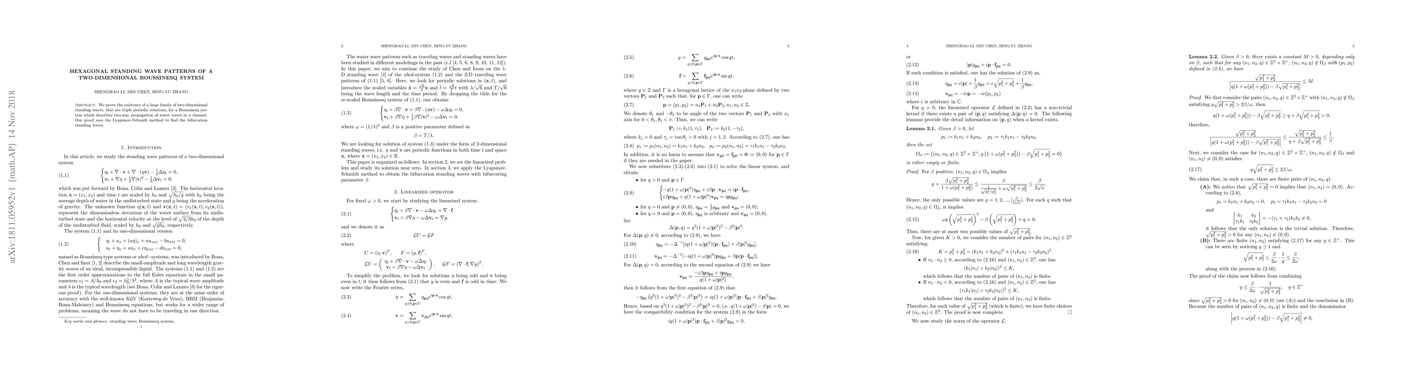 Researchers prove the existence of a large family of two-dimensional standing waves in water waves channels, using the Lyapunov-Schmidt method to find bifurcation solutions.