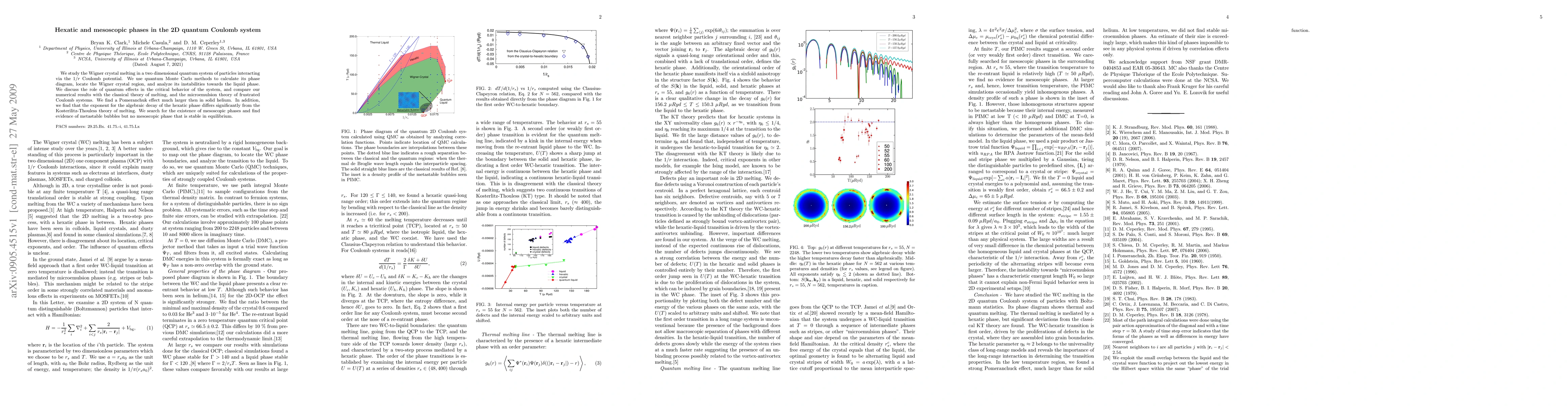We study the Wigner crystal melting in a two dimensional quantum system of particles interacting via the 1/r Coulomb potential. We use quantum Monte Carlo methods to calculate its phase diagram, locate the Wigner crystal region, and analyze its instabilities towards the liquid phase. We discuss the role of quantum effects in the critical behavior of the system, and compare our numerical results with the classical theory of melting, and the microemulsion theory of frustrated Coulomb systems. We find a Pomeranchuk effect much larger then in solid helium. In addition, we find that the exponent for the algebraic decay of the hexatic phase differs significantly from the Kosterilitz-Thouless theory of melting. We search for the existence of mesoscopic phases and find evidence of metastable bubbles but no mesoscopic phase that is stable in equilibrium.