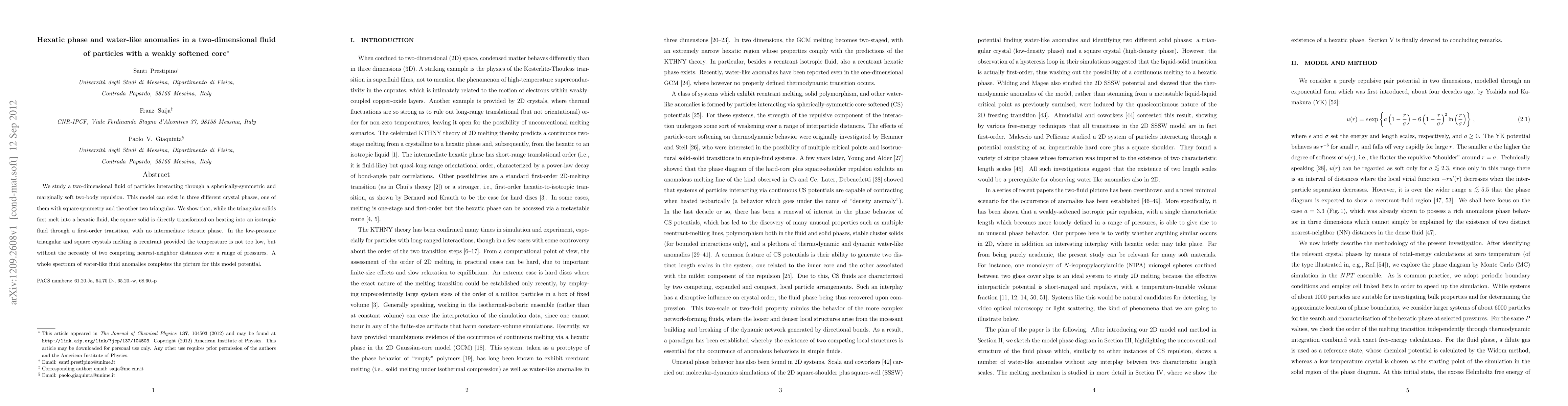 We study a two-dimensional fluid of particles interacting through a spherically-symmetric and marginally soft two-body repulsion. This model can exist in three different crystal phases, one of them with square symmetry and the other two triangular. We show that, while the triangular solids first melt into a hexatic fluid, the square solid is directly transformed on heating into an isotropic fluid through a first-order transition, with no intermediate tetratic phase. In the low-pressure triangular and square crystals melting is reentrant provided the temperature is not too low, but without the necessity of two competing nearest-neighbor distances over a range of pressures. A whole spectrum of water-like fluid anomalies completes the picture for this model potential.