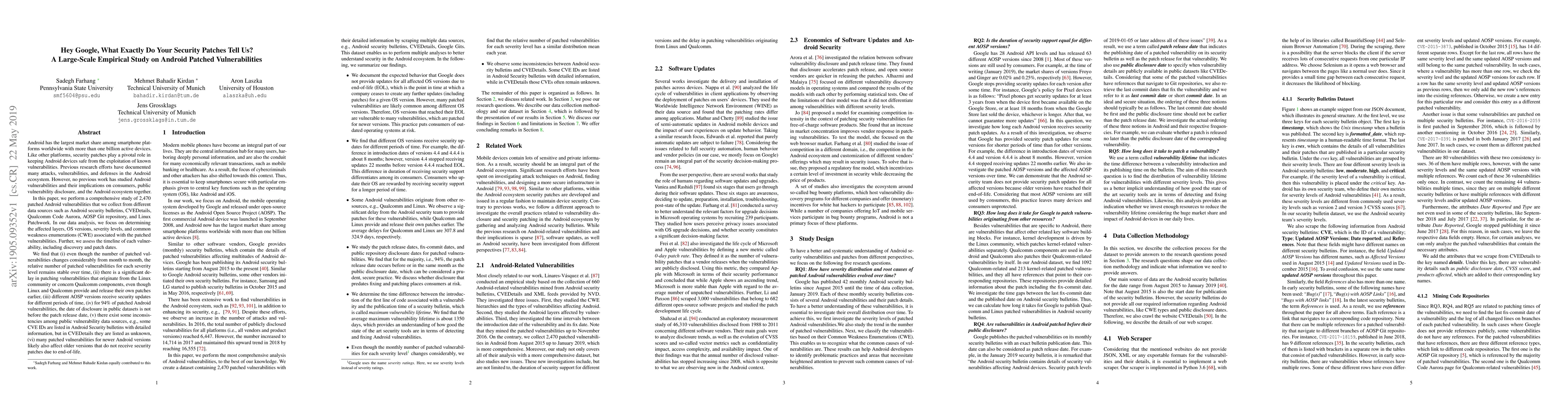 This study analyzes 2,470 patched Android vulnerabilities to determine affected layers, OS versions, severity levels, and common weaknesses. It finds stable severity distribution over time, significant delays in patching Linux and Qualcomm-origin vulnerabilities, varied update durations for different AOSP versions, and inconsistencies among public vulnerability datasets.