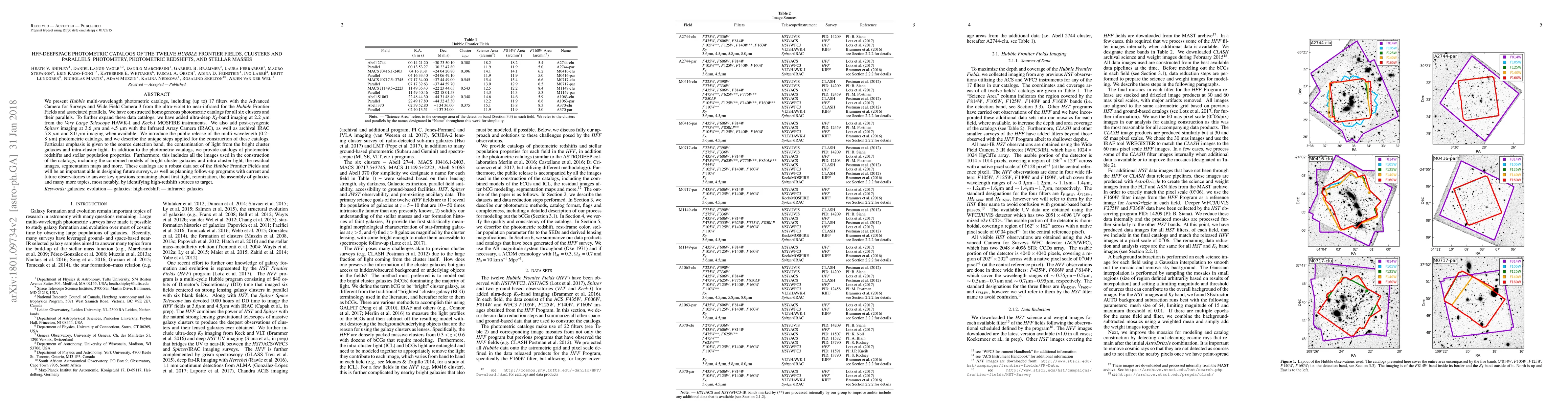 This paper presents comprehensive multi-wavelength photometric catalogs for the Hubble Frontier Fields and their parallels, utilizing data from the Hubble Space Telescope, Very Large Telescope, and Spitzer Space Telescope. The catalogs include photometric redshifts and stellar mass estimates, aiming to aid future astronomical surveys and follow-up studies.