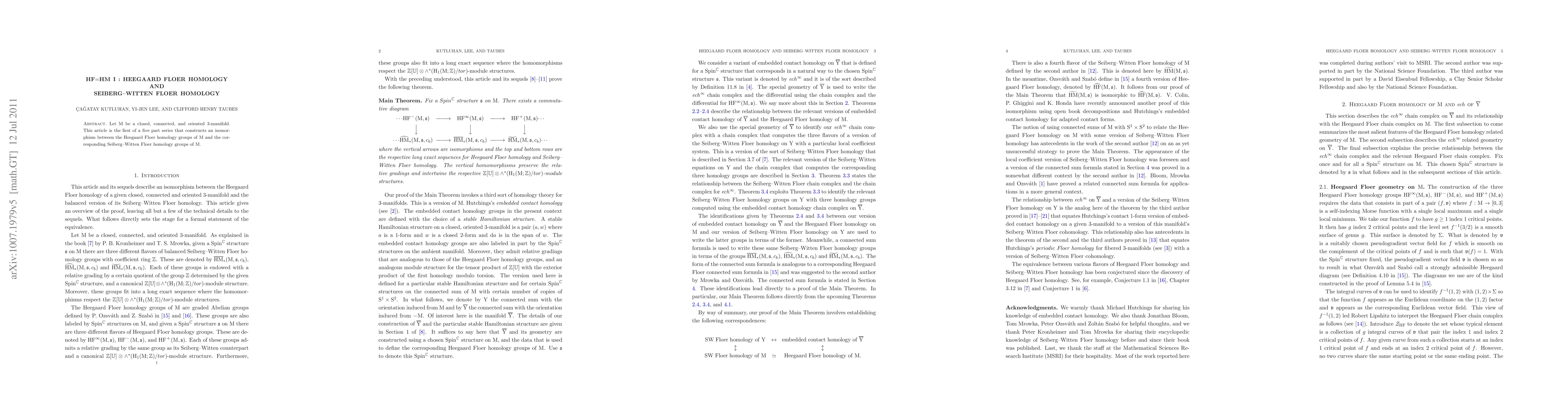 This paper establishes the first part of a series constructing an isomorphism between Heegaard Floer homology and Seiberg-Witten Floer homology for closed, connected, and oriented 3-manifolds. The ultimate goal is to demonstrate the equivalence between these two powerful topological invariants.