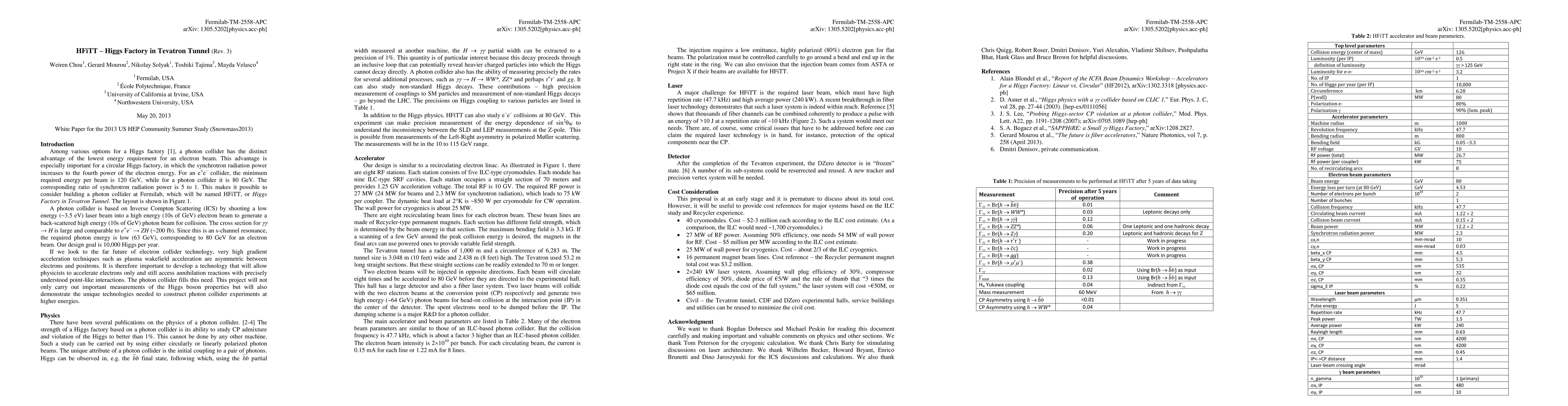 A proposed Higgs factory in the Tevatron tunnel aims to produce 10,000 Higgs bosons per year using a photon collider with advanced e-linac and fiber laser technology.