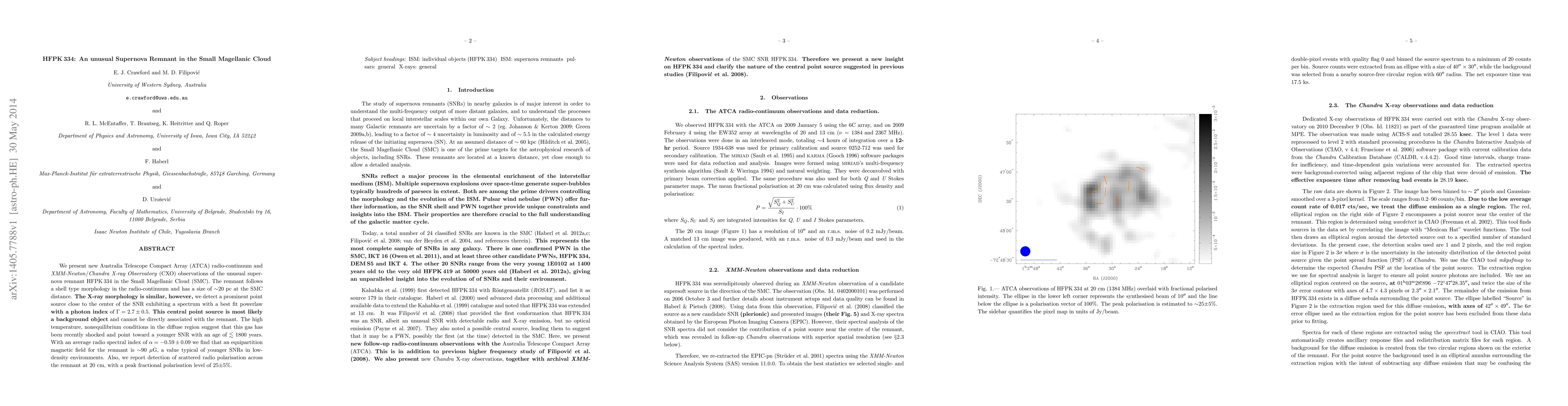 We present new Australia Telescope Compact Array (ATCA) radio-continuum and XMM-Newton/Chandra X-ray Observatory (CXO) observations of the unusual supernova remnant HFPK 334 in the Small Magellanic Cloud (SMC). The remnant follows a shell type morphology in the radio-continuum and has a size of $\sim$20~pc at the SMC distance. The X-ray morphology is similar, however, we detect a prominent point source close to the center of the SNR exhibiting a spectrum with a best fit powerlaw with a photon index of $\Gamma = 2.7 \pm 0.5$. This central point source is most likely a background object and cannot be directly associated with the remnant. The high temperature, nonequilibrium conditions in the diffuse region suggest that this gas has been recently shocked and point toward a younger SNR with an age of $\lesssim 1800$ years. With an average radio spectral index of $\alpha=-0.59\pm0.09$ we find that an equipartition magnetic field for the remnant is $\sim$90~$\mu$G, a value typical of younger SNRs in low-density environments. Also, we report detection of scattered radio polarisation across the remnant at 20~cm, with a peak fractional polarisation level of 25$\pm$5\%.