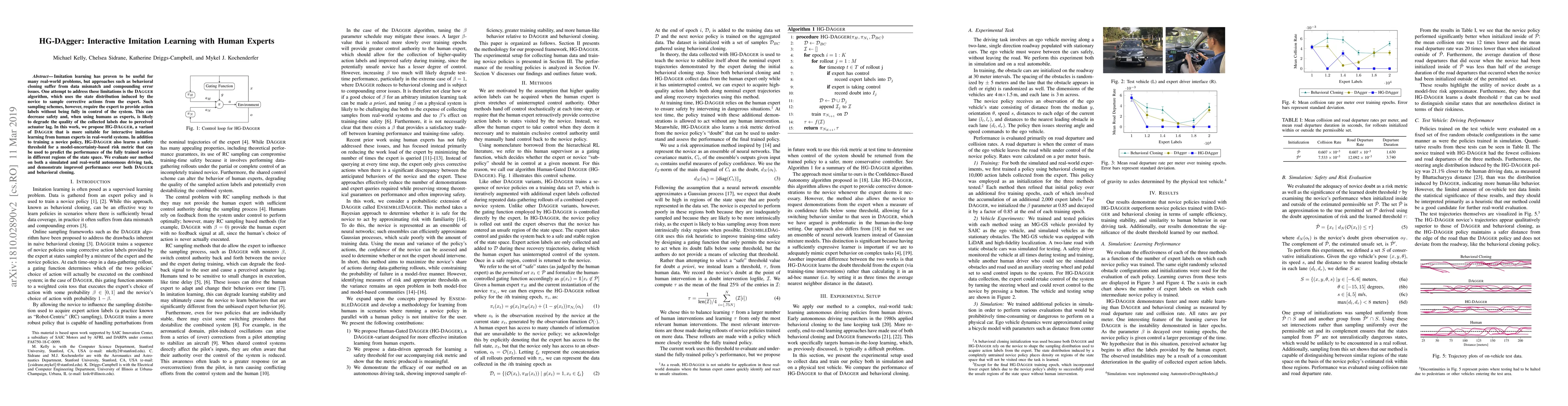 HG-DAgger enhances interactive imitation learning by addressing data mismatch and error compounding issues in behavioral cloning, particularly when using human experts. It introduces a safety threshold to manage model uncertainty, improving performance in simulated and real-world autonomous driving tasks.