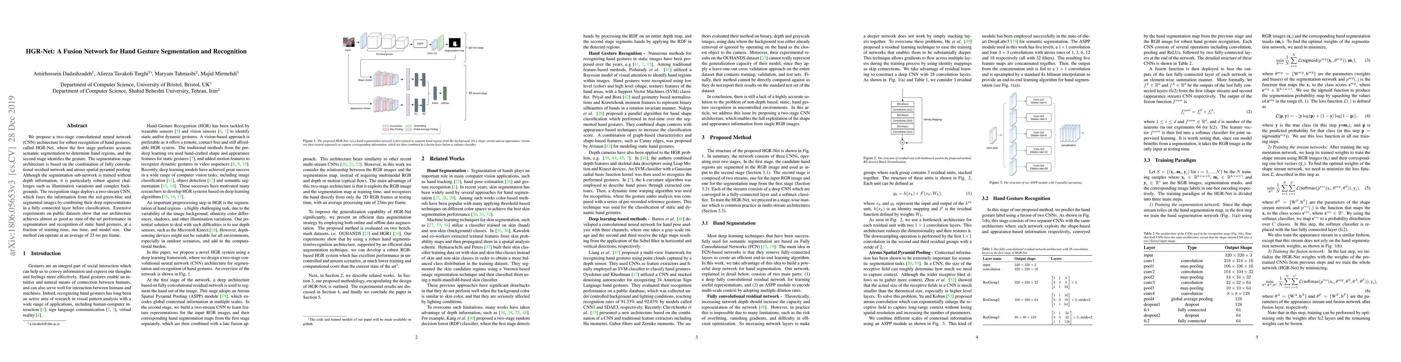 HGR-Net is a two-stage CNN architecture for robust hand gesture segmentation and recognition, combining semantic segmentation and gesture identification. It achieves state-of-the-art performance with reduced training time, runtime, and model size.