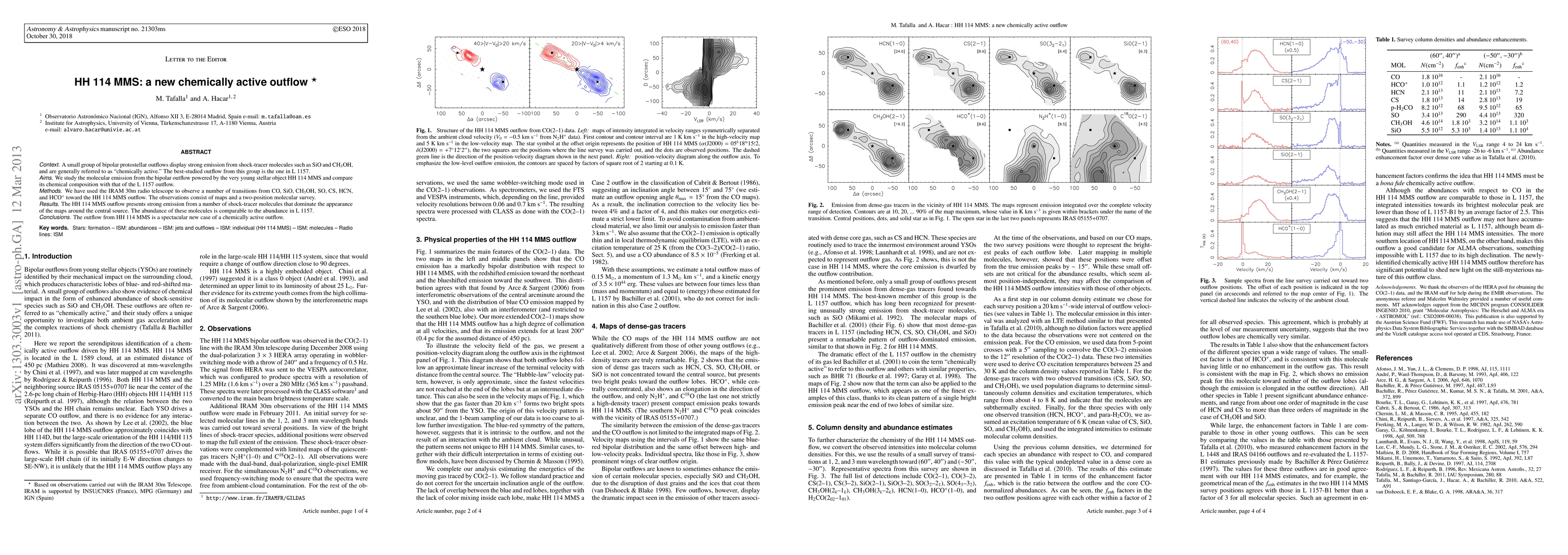 Context. A small group of bipolar protostellar outflows display strong emission from shock-tracer molecules such as SiO and CH3OH, and are generally referred to as "chemically active." The best-studied outflow from this group is the one in L 1157. Aims. We study the molecular emission from the bipolar outflow powered by the very young stellar object HH 114 MMS and compare its chemical composition with that of the L1157 outflow. Methods. We have used the IRAM 30m radio telescope to observe a number of transitions from CO, SiO, CH3OH, SO, CS, HCN, and HCO+ toward the HH 114 MMS outflow. The observations consist of maps and a two-position molecular survey. Results. The HH 114 MMS outflow presents strong emission from a number of shock-tracer molecules that dominate the appearance of the maps around the central source. The abundance of these molecules is comparable to the abundance in L 1157. Conclusions. The outflow from HH 114 MMS is a spectacular new case of a chemically active outflow.