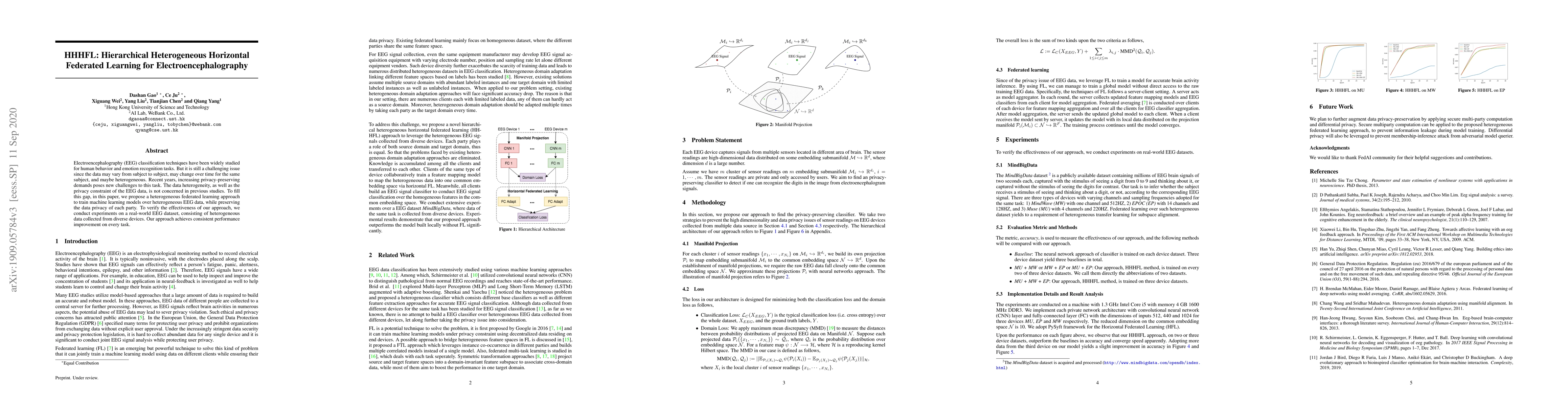 Researchers propose a new approach to train machine learning models on heterogeneous EEG data while preserving individual privacy, achieving consistent performance improvement in real-world experiments. The study addresses the challenges of data heterogeneity and privacy concerns in EEG classification tasks.