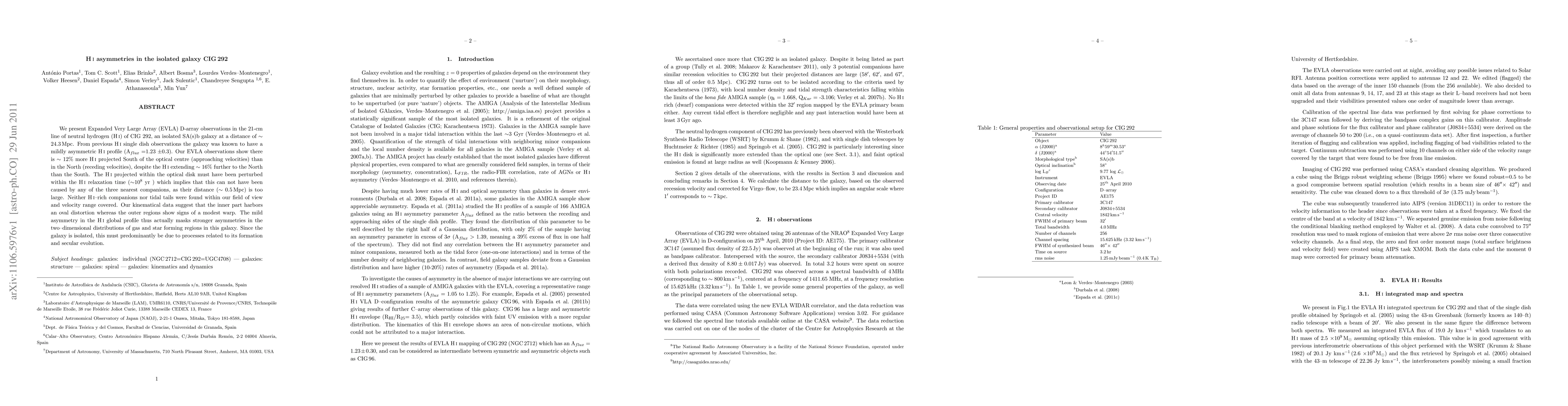 We present Expanded Very Large Array (EVLA) D-array observations in the 21-cm line of neutral hydrogen (HI) of CIG 292, an isolated SA(s)b galaxy at a distance of ~ 24.3Mpc. From previous HI single dish observations the galaxy was known to have a mildly asymmetric HI profile (A_flux =1.23 {\pm}0.3). Our EVLA observations show there is ~ 12% more HI projected South of the optical centre (approaching velocities) than in the North (receding velocities), despite the HI extending ~ 16% further to the North than the South. The HI projected within the optical disk must have been perturbed within the HI relaxation time (~ 10^8 yr) which implies that this can not have been caused by any of the three nearest companions, as their distance (~ 0.5Mpc) is too large. Neither HI-rich companions nor tidal tails were found within our field of view and velocity range covered. Our kinematical data suggest that the inner part harbors an oval distortion whereas the outer regions show signs of a modest warp. The mild asymmetry in the HI global profile thus actually masks stronger asymmetries in the two-dimensional distributions of gas and star forming regions in this galaxy. Since the galaxy is isolated, this must predominantly be due to processes related to its formation and secular evolution.