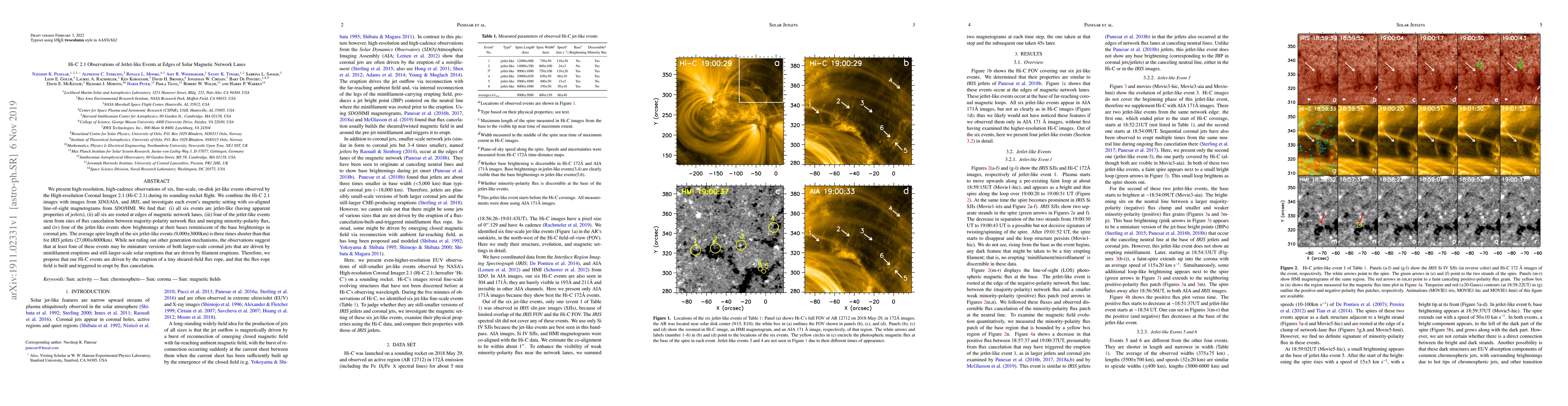 We present high-resolution, high-cadence observations of six, fine-scale, on-disk jet-like events observed by the High-resolution Coronal Imager 2.1 (Hi-C 2.1) during its sounding-rocket flight. We combine the Hi-C 2.1 images with images from SDO/AIA, and IRIS, and investigate each event's magnetic setting with co-aligned line-of-sight magnetograms from SDO/HMI. We find that: (i) all six events are jetlet-like (having apparent properties of jetlets), (ii) all six are rooted at edges of magnetic network lanes, (iii) four of the jetlet-like events stem from sites of flux cancelation between majority-polarity network flux and merging minority-polarity flux, and (iv) four of the jetlet-like events show brightenings at their bases reminiscent of the base brightenings in coronal jets. The average spire length of the six jetlet-like events (9,000$\pm$3000km) is three times shorter than that for IRIS jetlets (27,000$\pm$8000km). While not ruling out other generation mechanisms, the observations suggest that at least four of these events may be miniature versions of both larger-scale coronal jets that are driven by minifilament eruptions and still-larger-scale solar eruptions that are driven by filament eruptions. Therefore, we propose that our Hi-C events are driven by the eruption of a tiny sheared-field flux rope, and that the flux-rope field is built and triggered to erupt by flux cancelation.