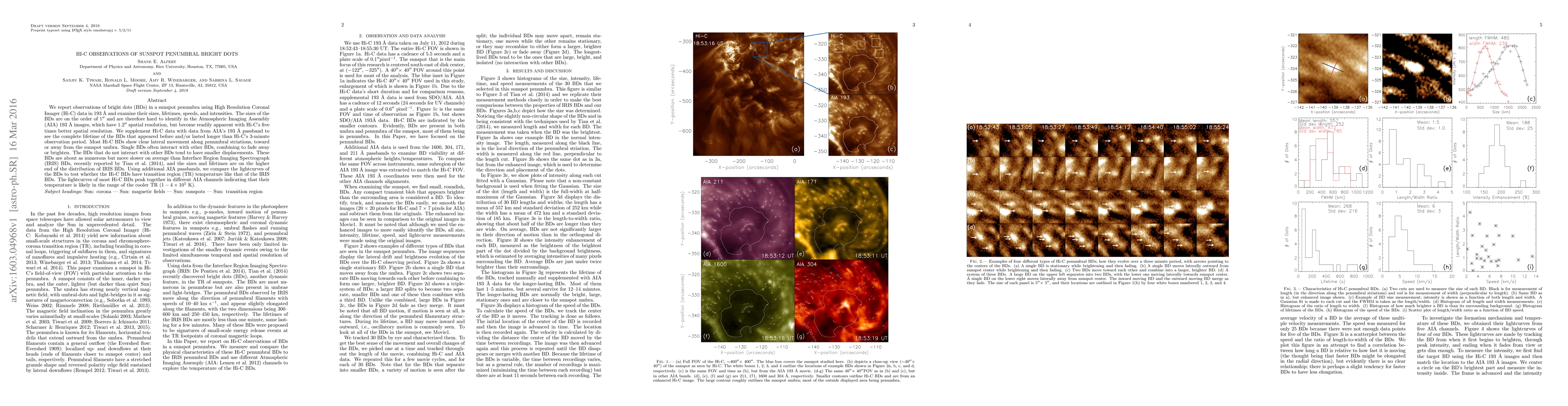 The research utilized High Resolution Coronal Imager (Hi-C) data in 193 Å alongside Atmospheric Imaging Assembly (AIA) 193 Å data to observe and analyze bright dots (BDs) in a sunspot penumbra, focusing on their sizes, lifetimes, speeds, and intensities.