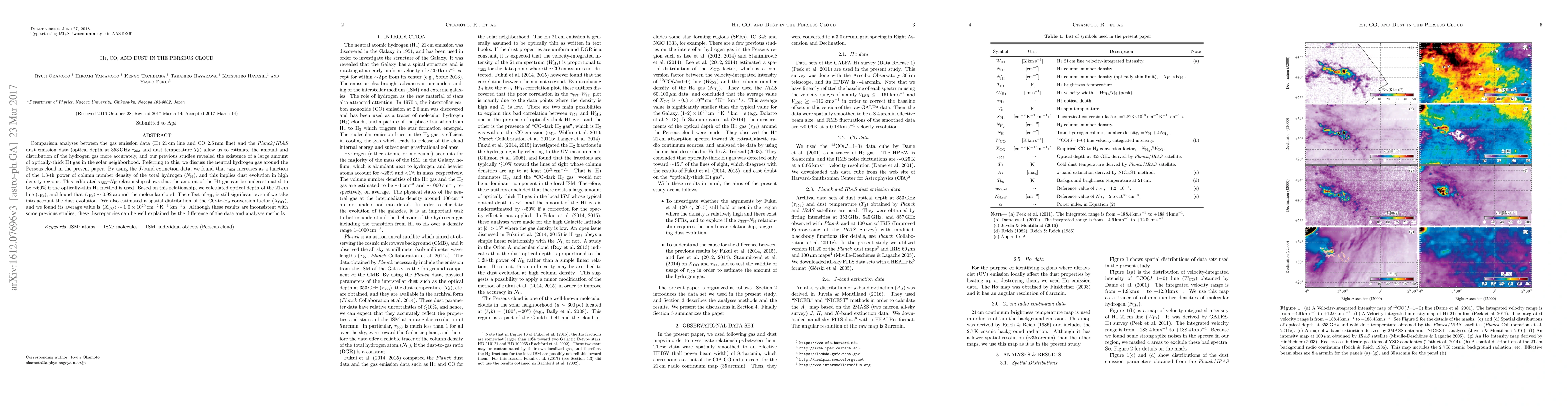 This paper compares HI, CO, and dust emission data to accurately estimate the hydrogen gas distribution in the Perseus cloud. It finds that the HI gas amount can be underestimated by ~60% using optically-thin methods, and the average CO-to-H2 conversion factor is <XCO> ~ 1.0x10^20 cm-2 K-1 km-1 s, differing from some previous studies due to methodological variances.