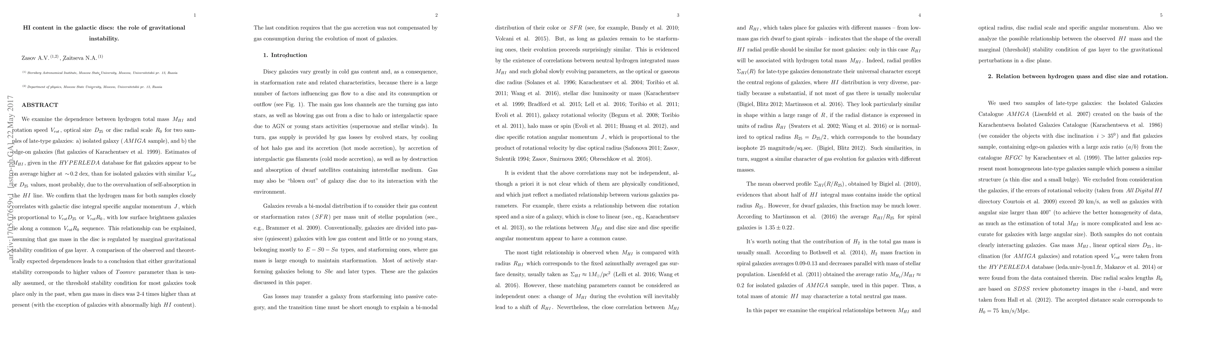 This paper investigates the relationship between hydrogen mass ($M_{HI}$) and rotation speed ($V_{rot}$) in late-type galaxies, finding that $M_{HI}$ correlates with galactic disc angular momentum. The study suggests that gravitational instability may have regulated the gas mass in galactic discs, implying that past conditions allowed for higher gas mass than currently observed.