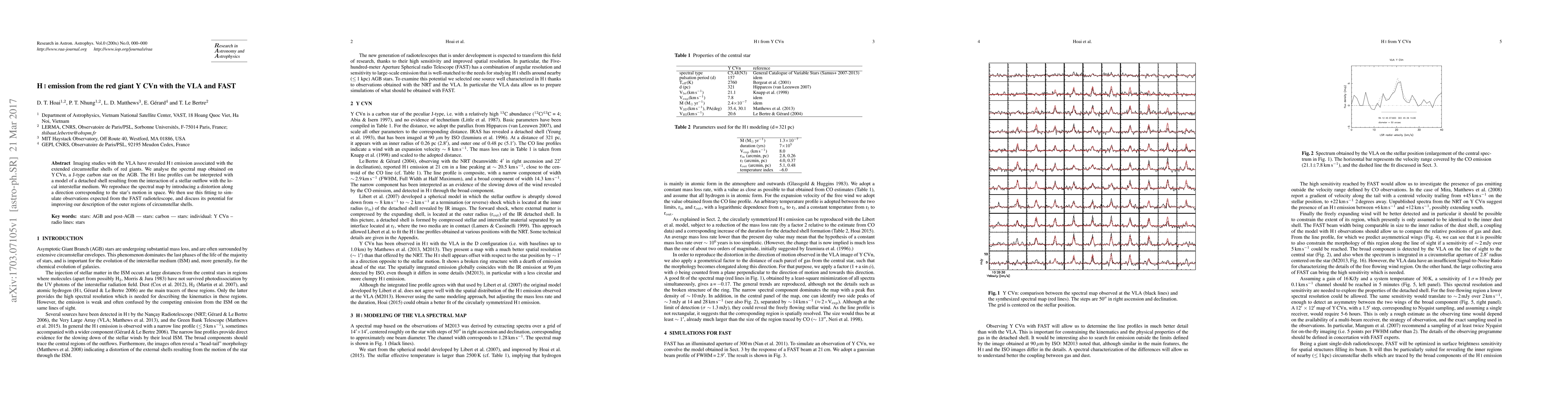 Researchers used VLA and FAST to study HI emission from red giant Y CVn, finding a detached shell and simulating FAST's potential for improving circumstellar shell descriptions.