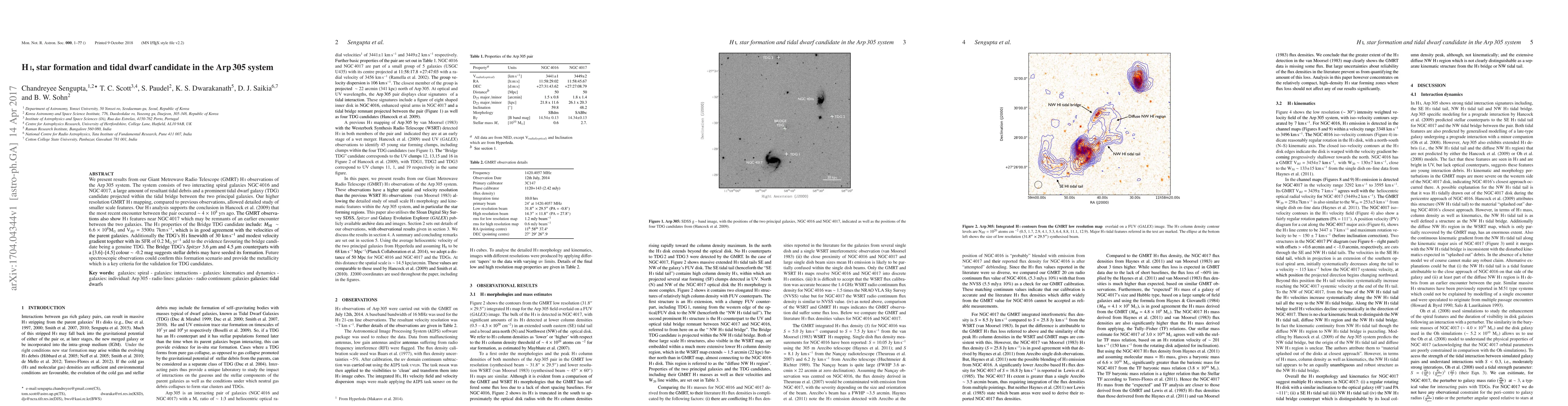 We present results from our Giant Metrewave Radio Telescope (GMRT) HI observations of the Arp 305 system. The system consists of two interacting spiral galaxies NGC 4016 and NGC 4017, a large amount of resultant tidal debris and a prominent tidal dwarf galaxy (TDG) candidate projected within the tidal bridge between the two principal galaxies. Our higher resolution GMRT HI mapping, compared to previous observations, allowed detailed study of smaller scale features. Our HI analysis supports the conclusion in Hancock et al. (2009) that the most recent encounter between the pair occurred $\sim$ 4 $\times$ 10$^8$ yrs ago. The GMRT observations also show HI features near NGC 4017 which may be remnants of an earlier encounter between the two galaxies. The HI properties of the Bridge TDG candidate include: M(HI) $\sim$ 6.6 $\times$ 10$^8$ msolar and V(HI) = 3500$\pm$ 7 km/s, which is in good agreement with the velocities of the parent galaxies. Additionally the TDG's HI linewidth of 30 km/s and a modest velocity gradient together with its SFR of 0.2 msolar/yr add to the evidence favouring the bridge candidate being a genuine TDG. The Bridge TDG's \textit{Spitzer} 3.6 $\mu$m and 4.5 $\mu$m counterparts with a [3.6]--[4.5] colour $\sim$ -0.2 mag suggests stellar debris may have seeded its formation. Future spectroscopic observations could confirm this formation scenario and provide the metallicity which is a key criteria for the validation for TDG candidates.