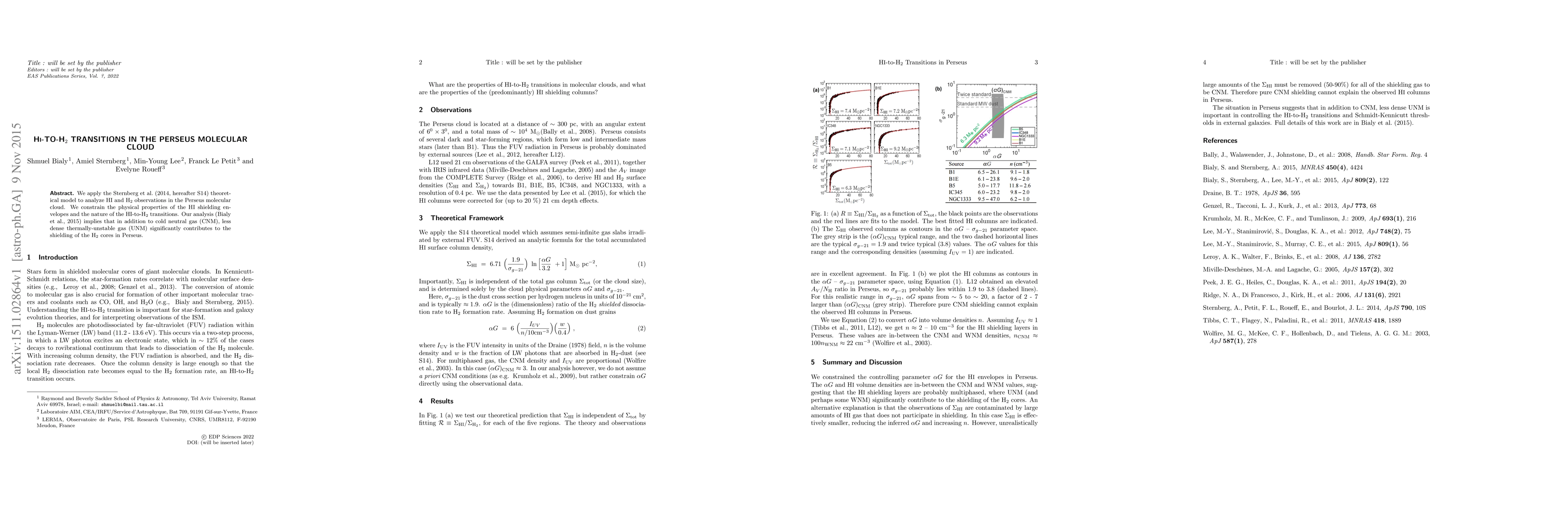 We apply the Sternberg et al. (2014) theoretical model to analyze HI and H2 observations in the Perseus molecular cloud. We constrain the physical properties of the HI shielding envelopes and the nature of the HI-to-H2 transitions. Our analysis (Bialy et al. 2015) implies that in addition to cold neutral gas (CNM), less dense thermally-unstable gas (UNM) significantly contributes to the shielding of the H2 cores in Perseus.