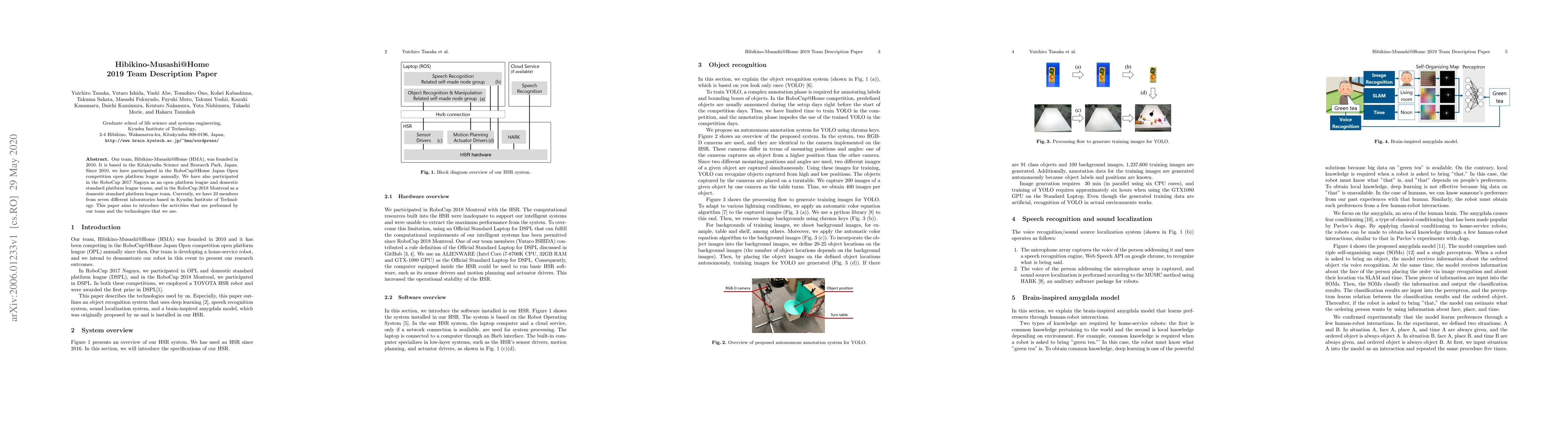 Our team, Hibikino-Musashi@Home (HMA), was founded in 2010. It is based in the Kitakyushu Science and Research Park, Japan. Since 2010, we have participated in the RoboCup@Home Japan Open competition open platform league annually. We have also participated in the RoboCup 2017 Nagoya as an open platform league and domestic standard platform league teams, and in the RoboCup 2018 Montreal as a domestic standard platform league team. Currently, we have 23 members from seven different laboratories based in Kyushu Institute of Technology. This paper aims to introduce the activities that are performed by our team and the technologies that we use.