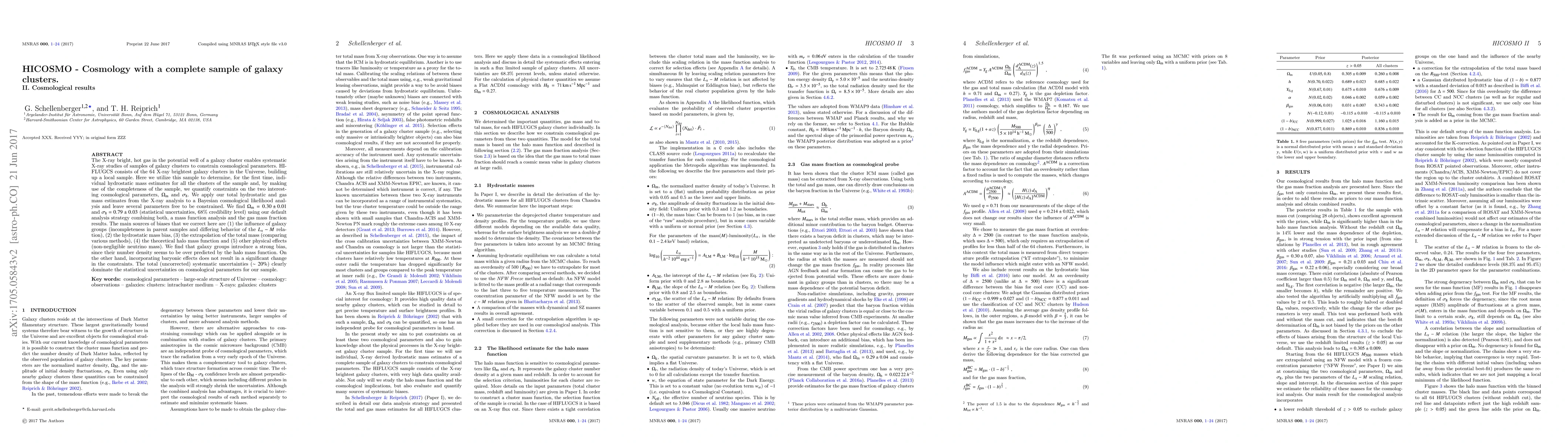 The growth of structure in the Universe is tightly correlated with the cosmological parameters. Galaxy clusters as tracers of the large scale structure are the ideal objects to witness this evolution. The X-ray bright, hot gas in the potential well of a galaxy cluster enables systematic X-ray studies of samples of galaxy clusters to constrain cosmological parameters. HIFLUGCS consists of the 64 X-ray brightest clusters in the Universe, building up a local sample of galaxy clusters. Here we utilize this sample to determine, for the first time, individual hydrostatic mass estimates for all the clusters of the sample and, by making use of the completeness of the sample, we quantify constraints on the two interesting cosmological parameters, OmegaM and sigma8. In paper I we describe the data analysis procedure and compared the individual mass estimates with other references. Now we apply the total hydrostatic and gas mass estimates from the X-ray analysis to a Bayesian cosmological likelihood analysis and leave several parameters free to be constrained. We find OmegaM = 0.30+-0.01 and sigma8 = 0.79+-0.03 (statistical uncertainties, 68% credibility level) using our default analysis strategy combining both, a mass function analysis and the gas mass fraction results. The main sources of biases that we also correct here are (1) the influence of galaxy groups, (2) the hydrostatic mass bias, (3) the extrapolation of the total mass, (4) the theoretical halo mass function and (5) other physical effects. We find that galaxy groups introduce a strong bias, since their number density seems to be over predicted by the halo mass function. On the other hand, baryonic effects as incorporated by recent hydrodynamical simulations do not result in a significant change in the constraints. The total systematic uncertainties (20%) clearly dominate the statistical uncertainties on cosmological parameters.