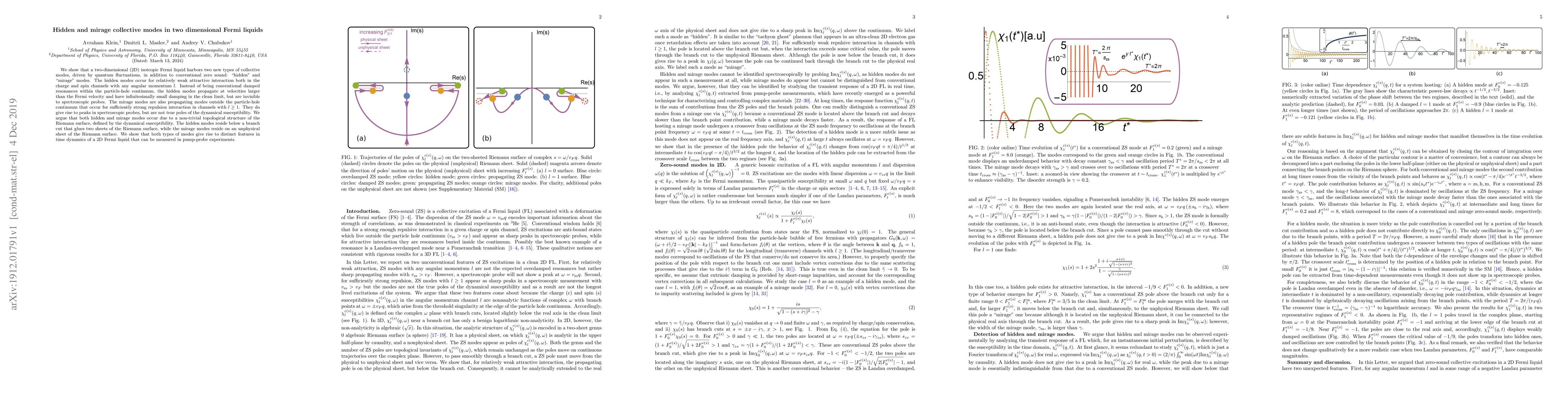 We show that a two-dimensional (2D) isotropic Fermi liquid harbors two new types of collective modes, driven by quantum fluctuations, in addition to conventional zero sound: "hidden" and "mirage" modes. The hidden modes occur for relatively weak attractive interaction both in the charge and spin channels with any angular momentum $l$. Instead of being conventional damped resonances within the particle-hole continuum, the hidden modes propagate at velocities larger than the Fermi velocity and have infinitesimally small damping in the clean limit, but are invisible to spectroscopic probes. The mirage modes are also propagating modes outside the particle-hole continuum that occur for sufficiently strong repulsion interaction in channels with $l\geq 1$. They do give rise to peaks in spectroscopic probes, but are not true poles of the dynamical susceptibility. We argue that both hidden and mirage modes occur due to a non-trivial topological structure of the Riemann surface, defined by the dynamical susceptibility. The hidden modes reside below a branch cut that glues two sheets of the Riemann surface, while the mirage modes reside on an unphysical sheet of the Riemann surface. We show that both types of modes give rise to distinct features in time dynamics of a 2D Fermi liquid that can be measured in pump-probe experiments.