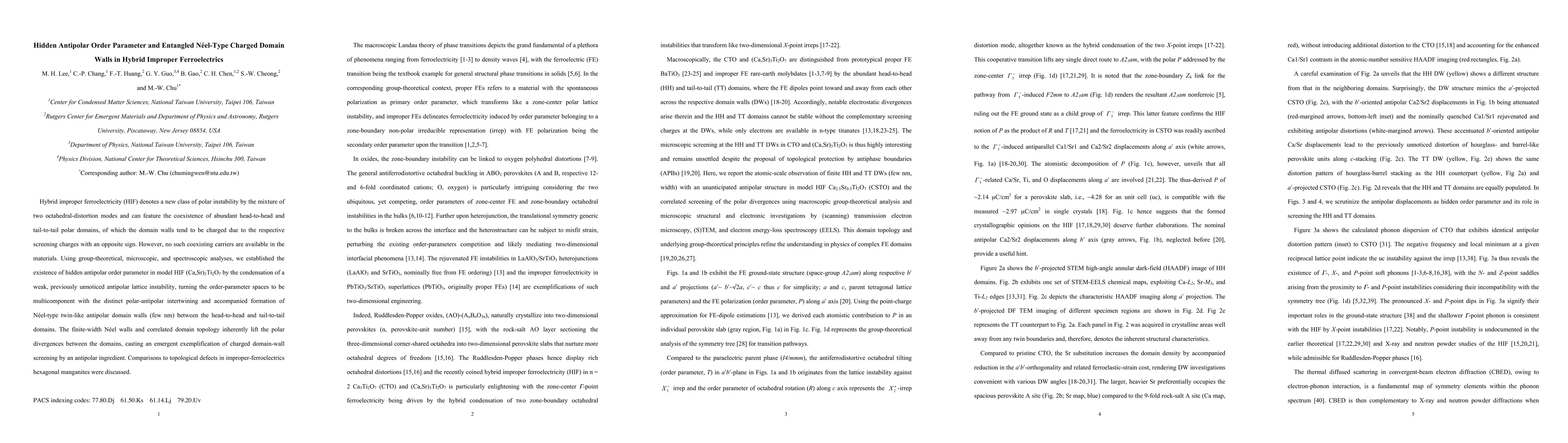 This paper identifies a hidden antipolar order parameter in hybrid improper ferroelectrics, specifically (Ca,Sr)3Ti2O7, revealing the coexistence of Neel-type charged domain walls between polar domains. The study combines group-theoretical, microscopic, and spectroscopic analyses to demonstrate the condensation of an unnoticed antipolar lattice instability, leading to multicomponent order-parameter spaces and the formation of finite-width Neel walls.