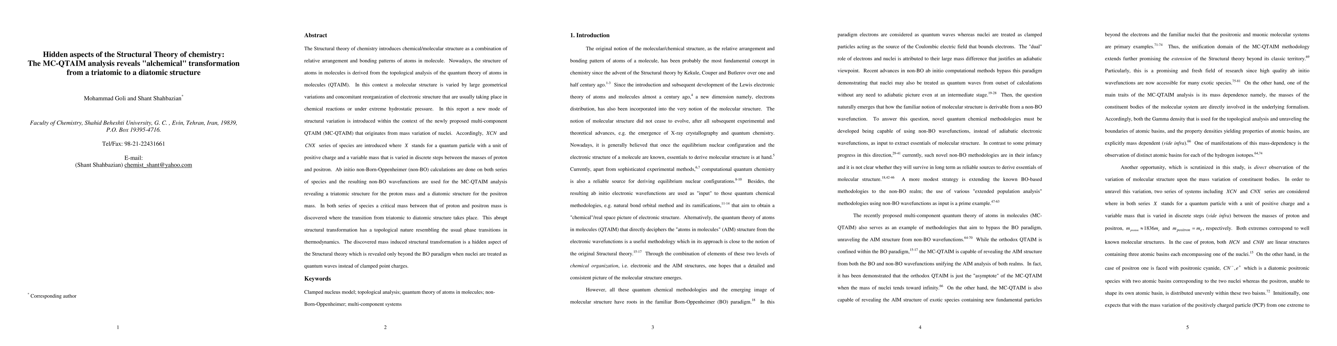 Researchers used a new quantum theory to analyze chemical structures of molecules with varying nuclear masses, discovering an 'alchemical' transformation from triatomic to diatomic structures at specific mass thresholds.