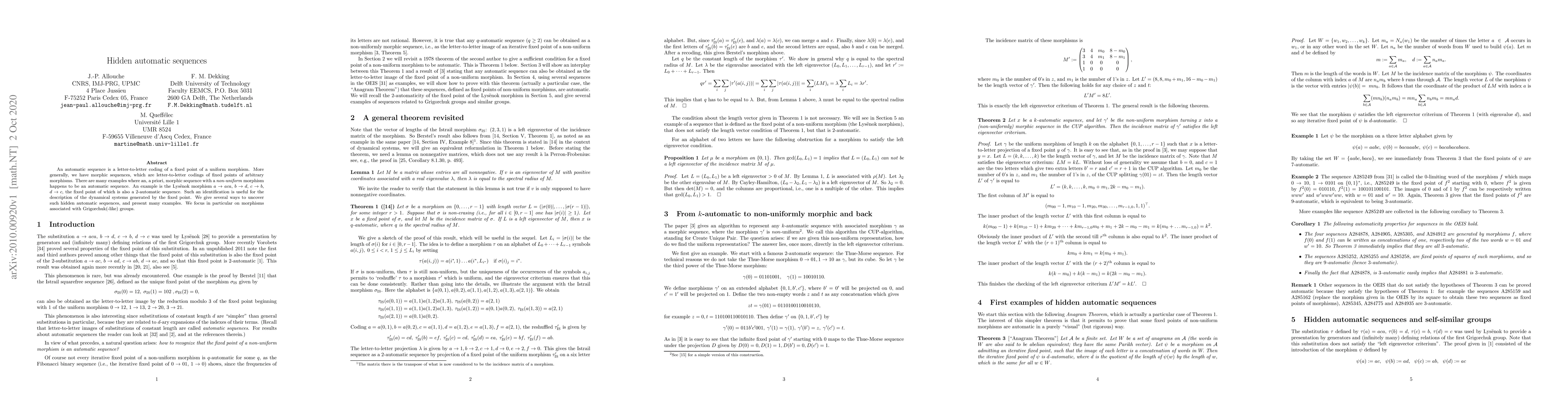 An automatic sequence is a letter-to-letter coding of a fixed point of a uniform morphism. More generally, we have morphic sequences, which are letter-to-letter codings of fixed points of arbitrary morphisms. There are many examples where an, a priori, morphic sequence with a \emph{non-uniform} morphism happens to be an automatic sequence. An example is the Lys\"enok morphism $a \to aca$, $b \to d$, $c \to b$, $d \to c$, the fixed point of which is also a 2-automatic sequence. Such an identification is useful for the description of the dynamical systems generated by the fixed point. We give several ways to uncover such hidden automatic sequences, and present many examples. We focus in particular on morphisms associated with Grigorchuk(-like) groups.