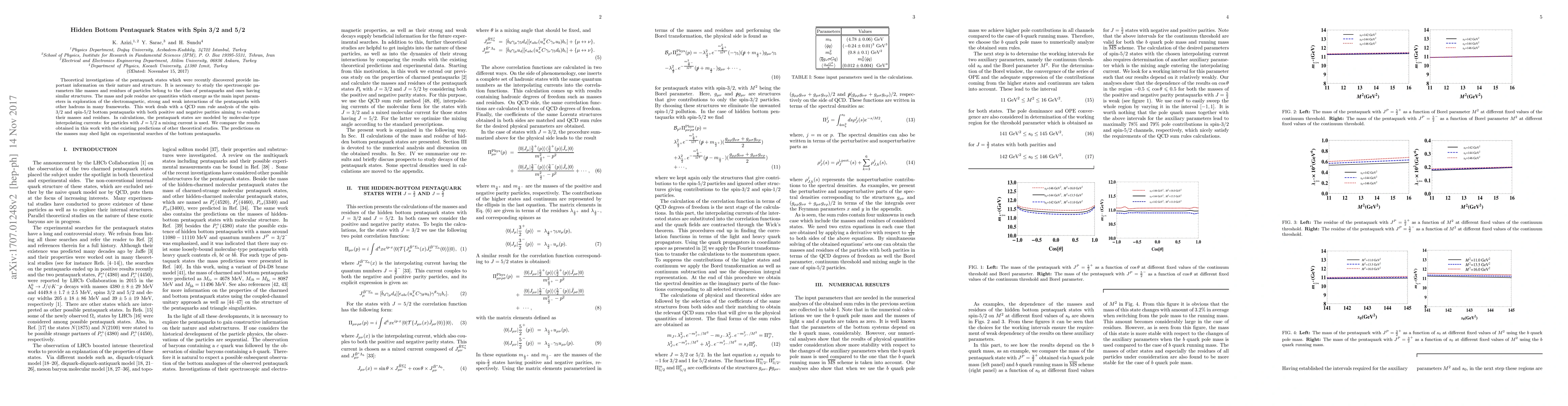 Theoretical investigations of the pentaquark states which were recently discovered provide important information on their nature and structure. It is necessary to study the spectroscopic parameters like masses and residues of particles belong to the class of pentaquarks and ones having similar structures. The mass and pole residue are quantities which emerge as the main input parameters in exploration of the electromagnetic, strong and weak interactions of the pentaquarks with other hadrons in many frameworks. This work deals with a QCD sum rule analysis of the spin-$3/2$ and spin-$5/2$ bottom pentaquarks with both positive and negative parities aiming to evaluate their masses and residues. In calculations, the pentaquark states are modeled by molecular-type interpolating currents: for particles with $J=5/2$ a mixing current is used. We compare the results obtained in this work with the existing predictions of other theoretical studies. The predictions on the masses may shed light on experimental searches of the bottom pentaquarks.