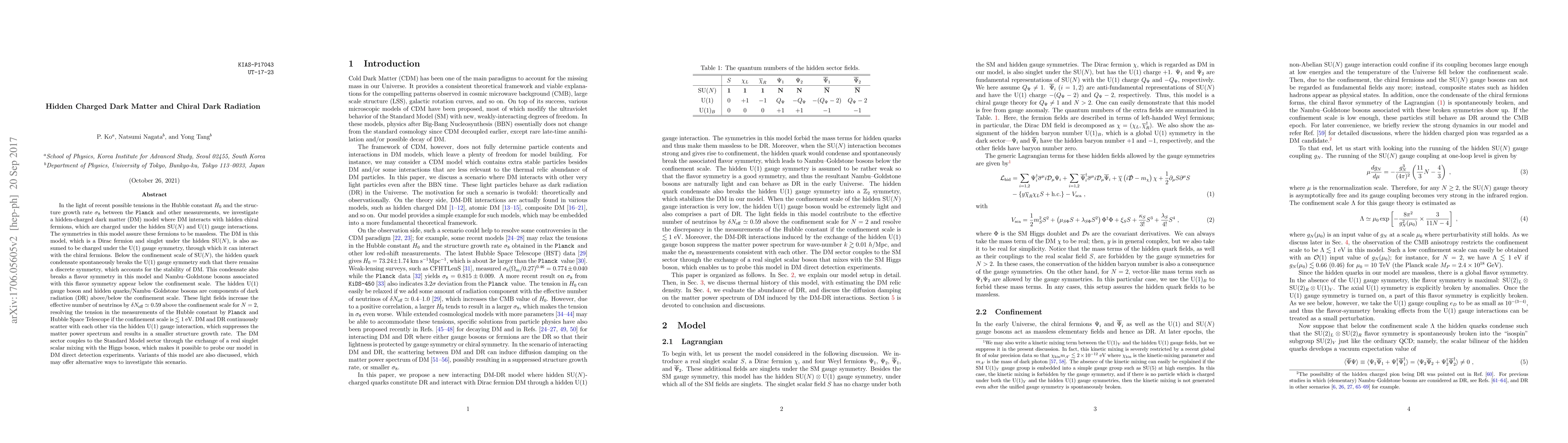 This paper explores a hidden-charged dark matter model where dark matter interacts with massless chiral fermions via hidden SU(N) and U(1) gauge symmetries. The model resolves tensions in Hubble constant measurements by introducing dark radiation components that increase the effective number of neutrinos, while suppressing structure growth rates.