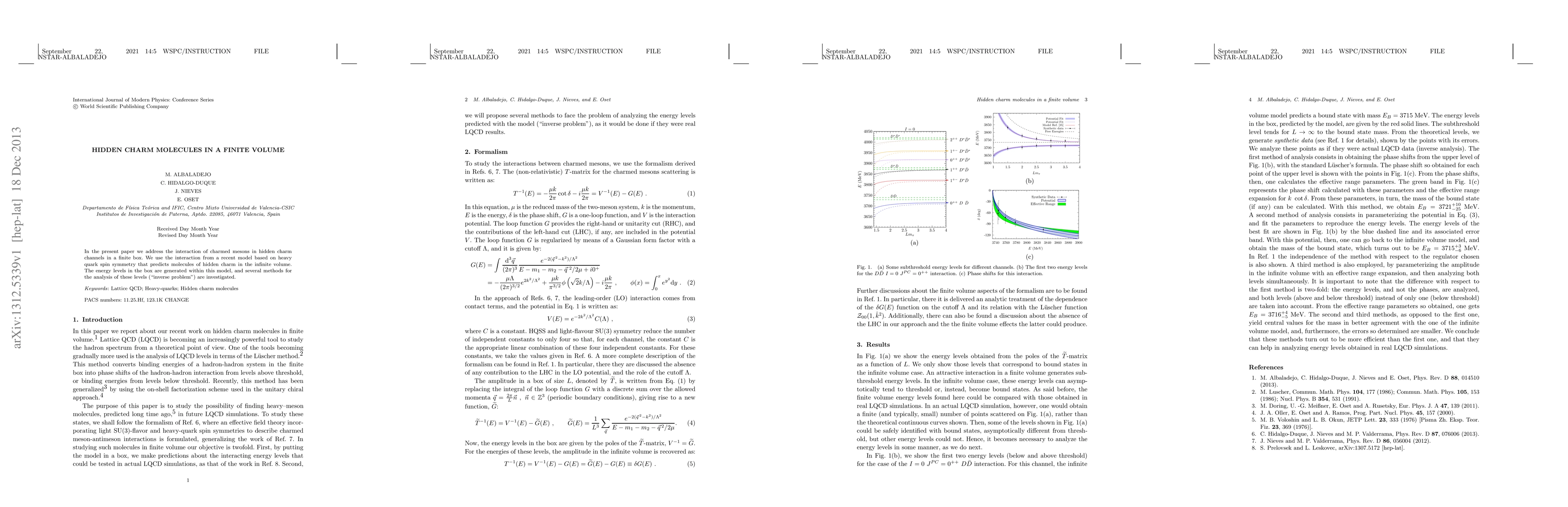 This paper investigates the interaction of charmed mesons in hidden charm channels within a finite volume, employing a model based on heavy quark spin symmetry. It explores the energy levels predicted by this model and examines various methods for analyzing these levels.