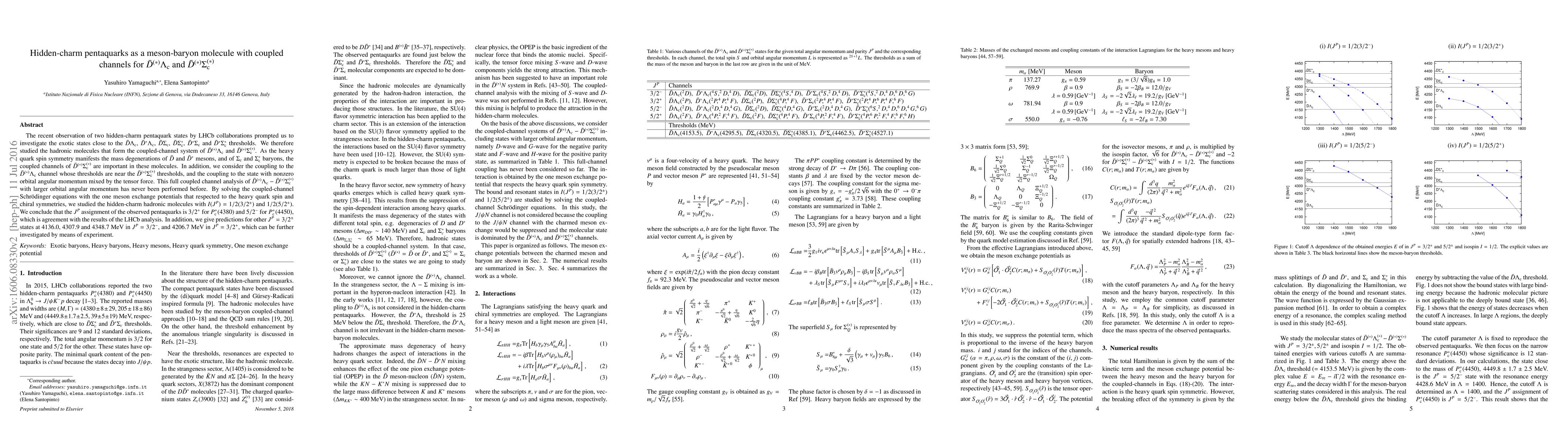 The recent observation of two hidden-charm pentaquark states by LHCb collaborations prompted us to investigate the exotic states close to the $\bar{D}\Lambda_{\rm c}$, $\bar{D}^{\ast}\Lambda_{\rm c}$, $\bar{D}\Sigma_{\rm c}$, $\bar{D}\Sigma^{\ast}_{\rm c}$, $\bar{D}^{\ast}\Sigma_{\rm c}$ and $\bar{D}^{\ast}\Sigma^{\ast}_{\rm c}$ thresholds. We therefore studied the hadronic molecules that form the coupled-channel system of $\bar{D}^{(\ast)}\Lambda_{\rm c}$ and $\bar{D}^{(\ast)}\Sigma^{(\ast)}_{\rm c}$. As the heavy quark spin symmetry manifests the mass degenerations of $\bar{D}$ and $\bar{D}^\ast$ mesons, and of $\Sigma_{\rm c}$ and $\Sigma^\ast_{\rm c}$ baryons, the coupled channels of $\bar{D}^{(\ast)}\Sigma^{(\ast)}_{\rm c}$ are important in these molecules. In addition, we consider the coupling to the $\bar{D}^{(\ast)}\Lambda_{\rm c}$ channel whose thresholds are near the $\bar{D}^{(\ast)}\Sigma^{(\ast)}_{\rm c}$ thresholds, and the coupling to the state with nonzero orbital angular momentum mixed by the tensor force. This full coupled channel analysis of $\bar{D}^{(\ast)}\Lambda_{\rm c}-\bar{D}^{(\ast)}\Sigma^{(\ast)}_{\rm c}$ with larger orbital angular momentum has never been performed before. By solving the coupled-channel Schr\"odinger equations with the one meson exchange potentials that respected to the heavy quark spin and chiral symmetries, we studied the hidden-charm hadronic molecules with $I(J^P)=1/2(3/2^\pm)$ and $1/2(5/2^\pm)$. We conclude that the $J^P$ assignment of the observed pentaquarks is $3/2^+$ for $P^+_{\rm c}(4380)$ and $5/2^-$ for $P^+_{\rm c}(4450)$, which is agreement with the results of the LHCb analysis. In addition, we give predictions for other $J^P=3/2^\pm$ states at 4136.0, 4307.9 and 4348.7 MeV in $J^P=3/2^-$, and 4206.7 MeV in $J^P=3/2^+$, which can be further investigated by means of experiment.