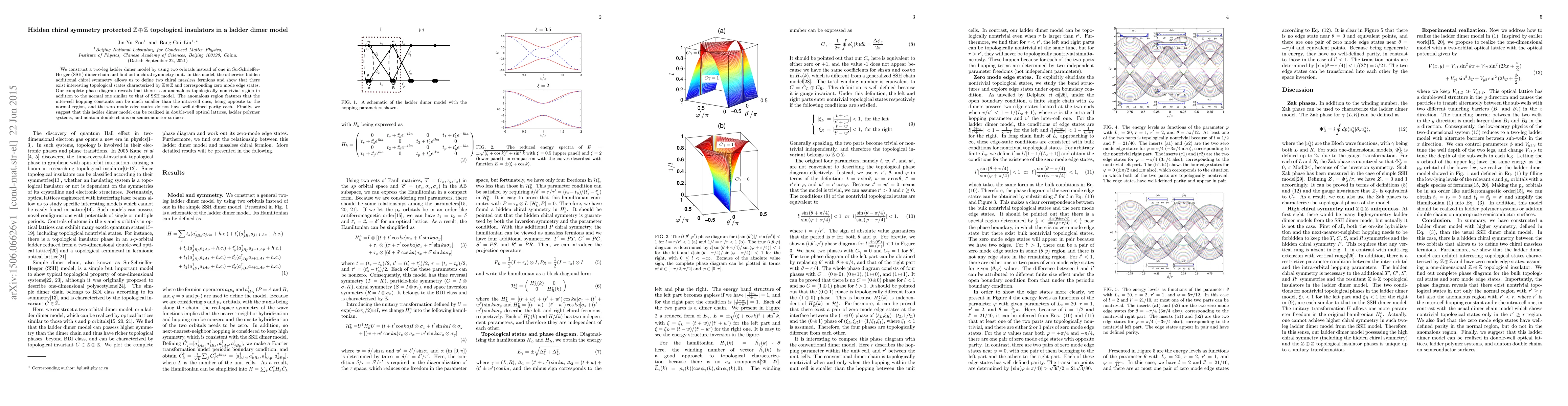 Researchers discovered a new topological insulator with a chiral symmetry protected by a two-leg ladder dimer model, exhibiting interesting zero-mode edge states and an anomalous phase diagram.