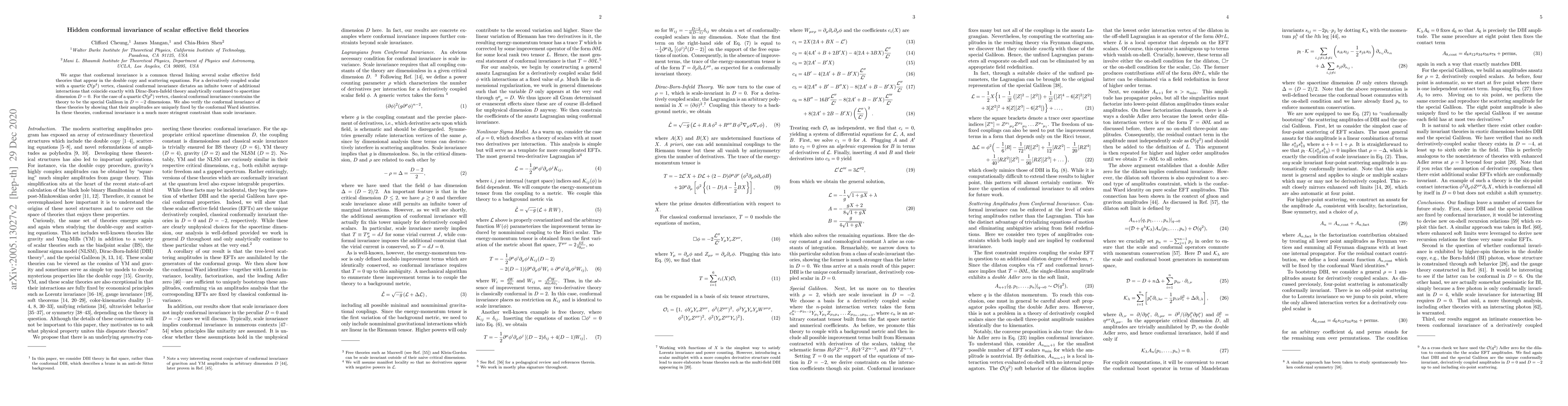 We argue that conformal invariance is a common thread linking several scalar effective field theories that appear in the double copy and scattering equations. For a derivatively coupled scalar with a quartic ${\cal O}(p^4)$ vertex, classical conformal invariance dictates an infinite tower of additional interactions that coincide exactly with Dirac-Born-Infeld theory analytically continued to spacetime dimension $D=0$. For the case of a quartic ${\cal O}(p^6)$ vertex, classical conformal invariance constrains the theory to be the special Galileon in $D=-2$ dimensions. We also verify the conformal invariance of these theories by showing that their amplitudes are uniquely fixed by the conformal Ward identities. In these theories, conformal invariance is a much more stringent constraint than scale invariance.