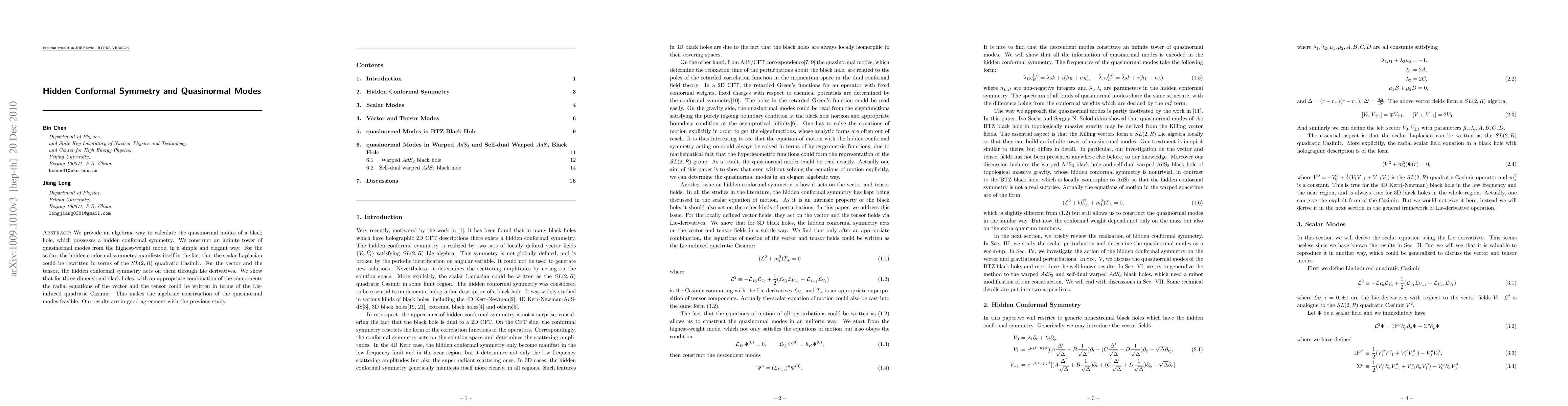 This paper presents an algebraic method to determine the quasi-normal modes of black holes with hidden conformal symmetry, constructing an infinite tower of modes from the highest-weight mode. It reveals that the scalar Laplacian can be expressed in terms of the $SL(2,R)$ quadratic Casimir, and for vector and tensor modes, the symmetry is manifested via Lie derivatives, enabling an algebraic construction of quasi-normal modes.